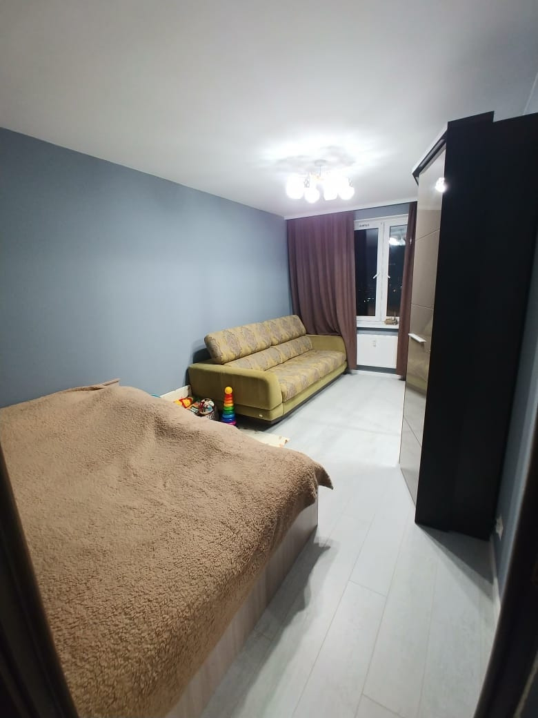 В комнате двуспальная кровать, массивный и дорогостоящий раскладной диван. Огромный шкаф-гардероб с сенсорной светодиодной подсветкой.