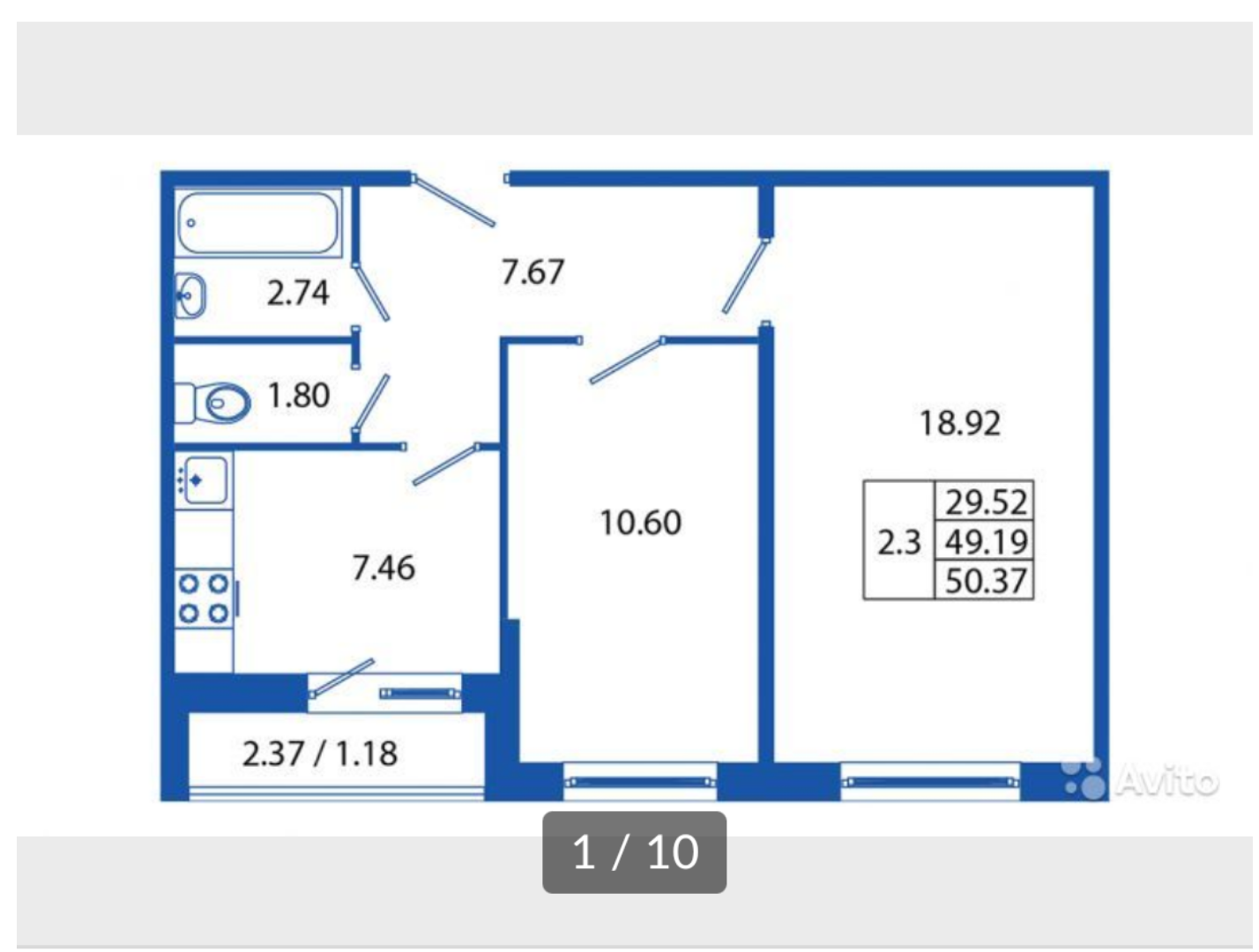 Общая площадь 50.37 м2