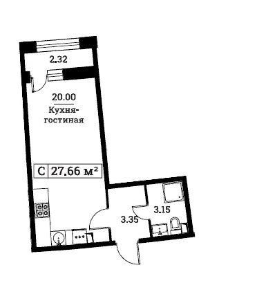 Общая площадь 27.66 м2