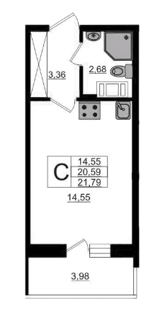 Площадь кухни 4.55 м2