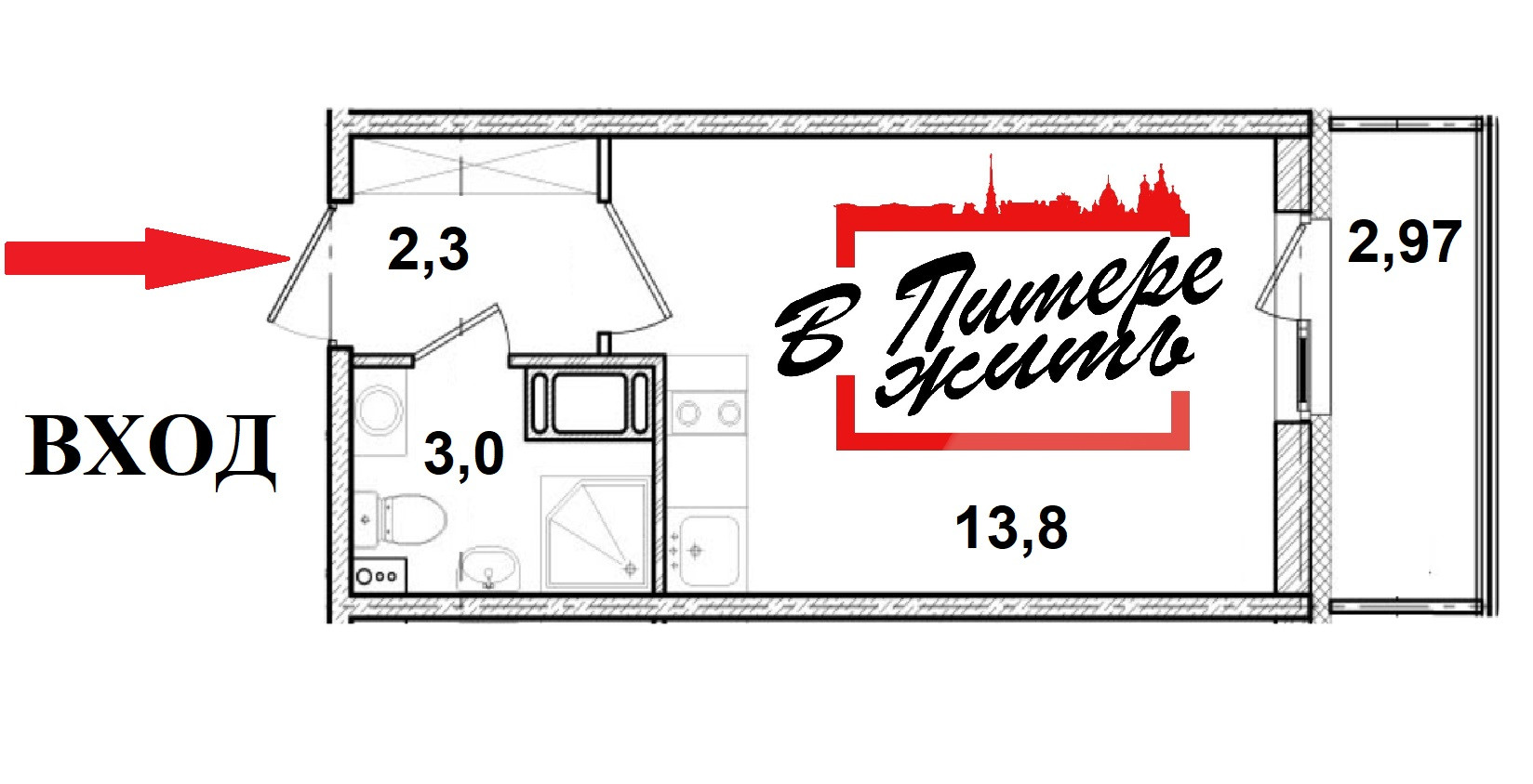 Общая площадь 20.6 м2