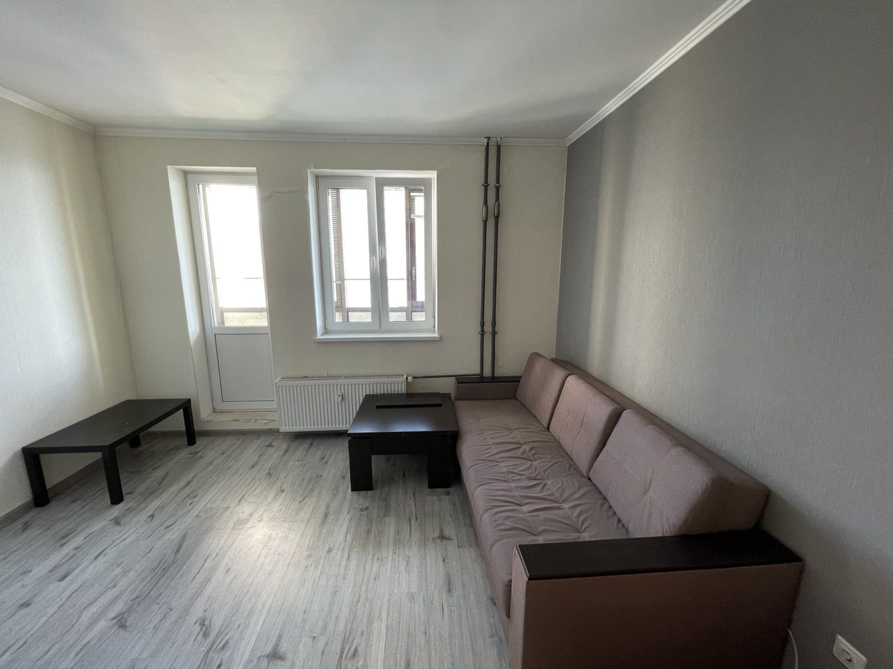 Квартира имеет удобную планировку, все достаточно компактно и комфортно. Просторная комната квадратной формы, в прихожей есть достаточно места для хорошей гардеробной. В санузле ремонт доделать не успели, сможете сделать все по вашему вкусу.