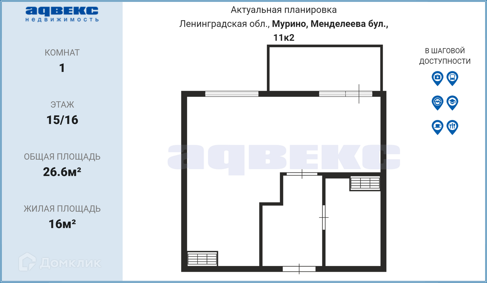 Общая площадь 26.6 м2