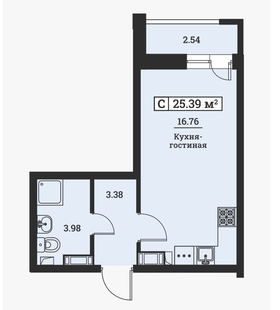 Общая площадь 25.39 м2