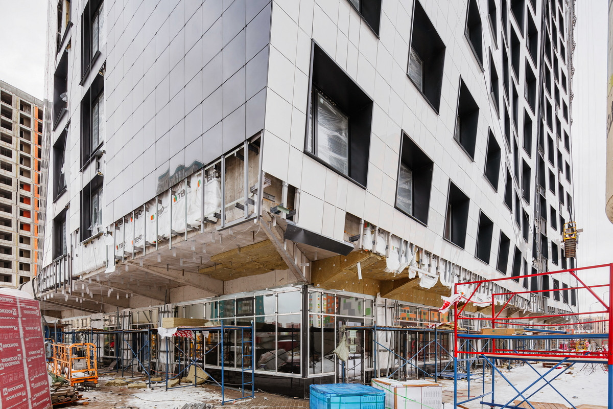 С большими окнами в строящимся доме.
