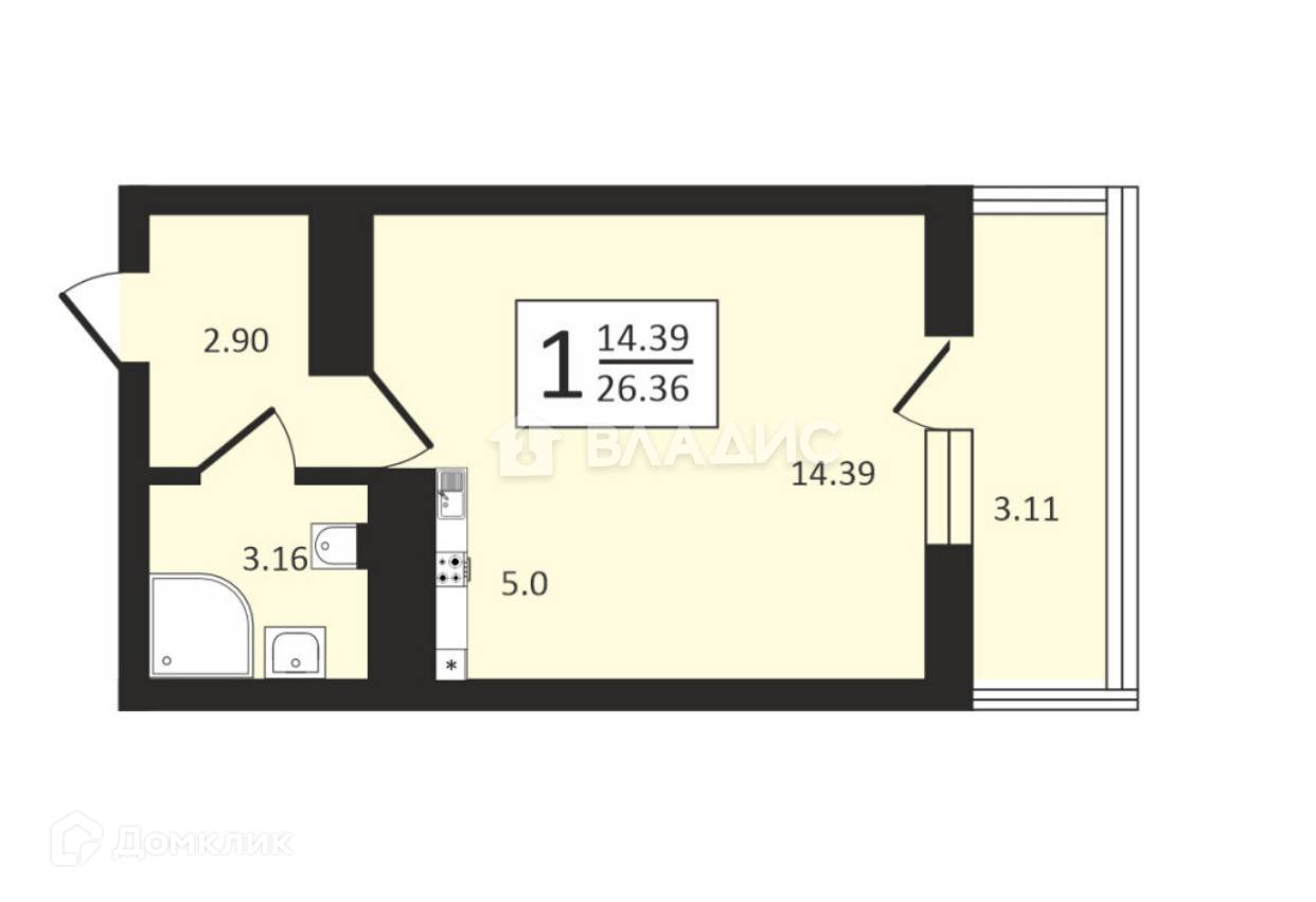 Жилая комната 20 кв. метров, лоджия остекленная, благоустроенная, 4 метра.