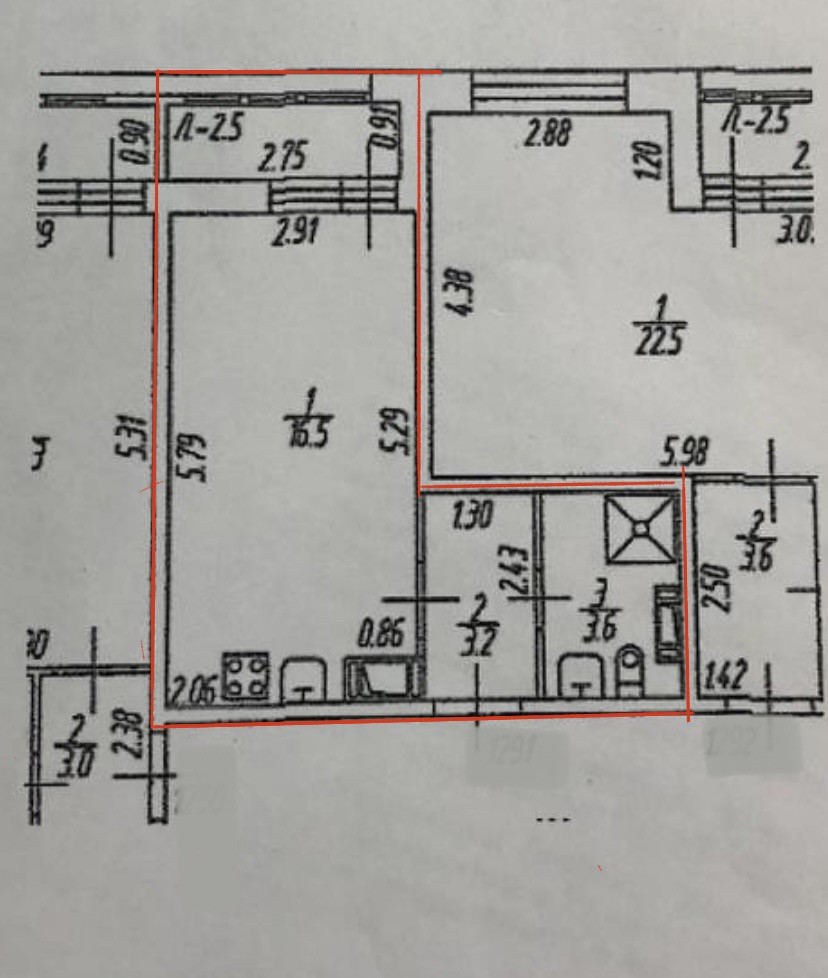 Балкон, лоджия 1 балкон