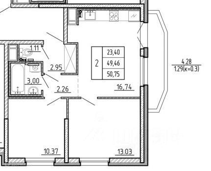 Балкон, лоджия 1 балкон