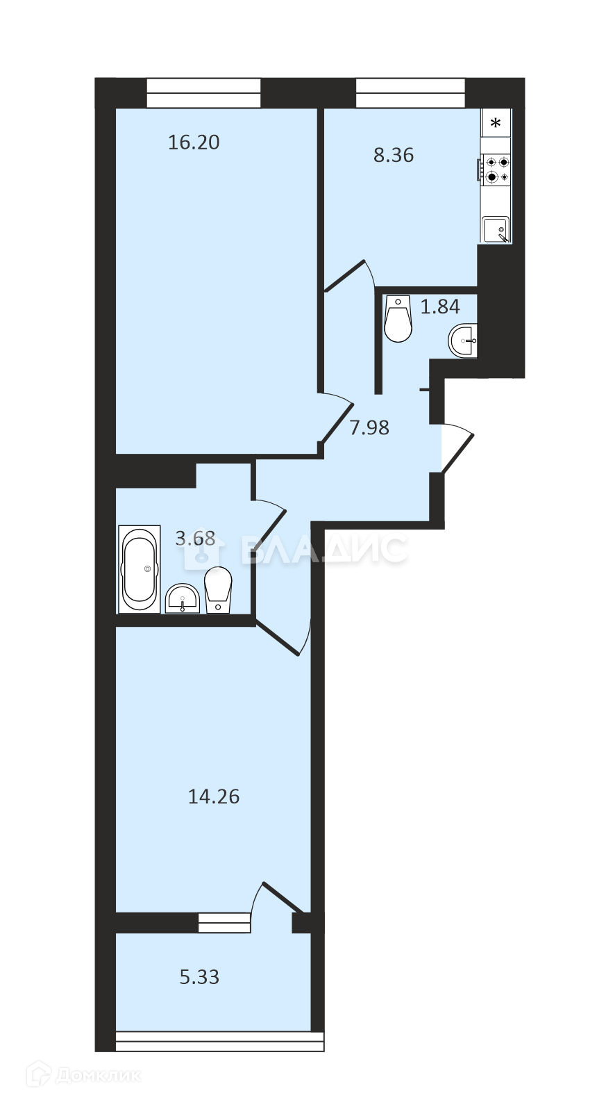 Общая площадь 52.1 м2