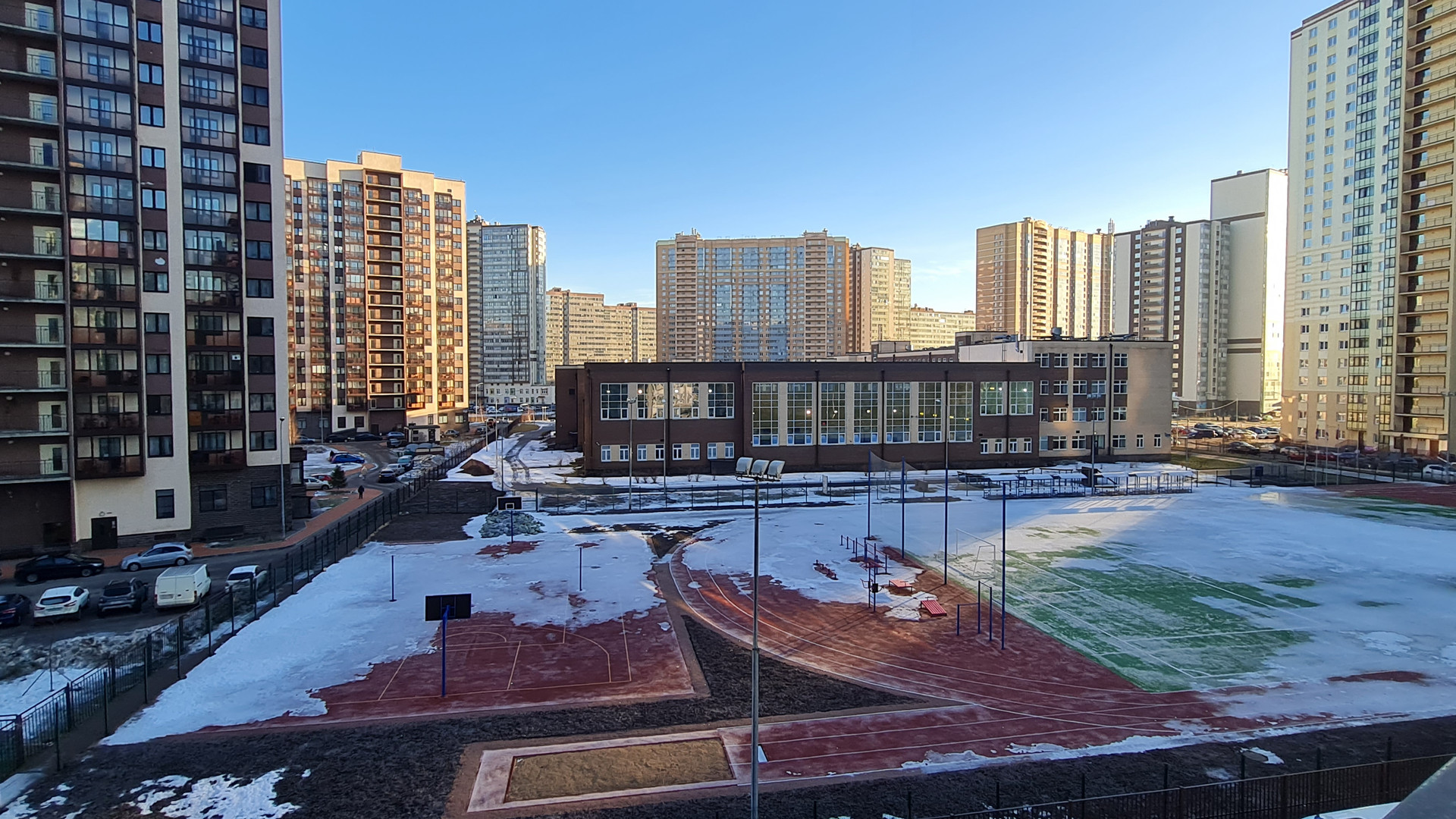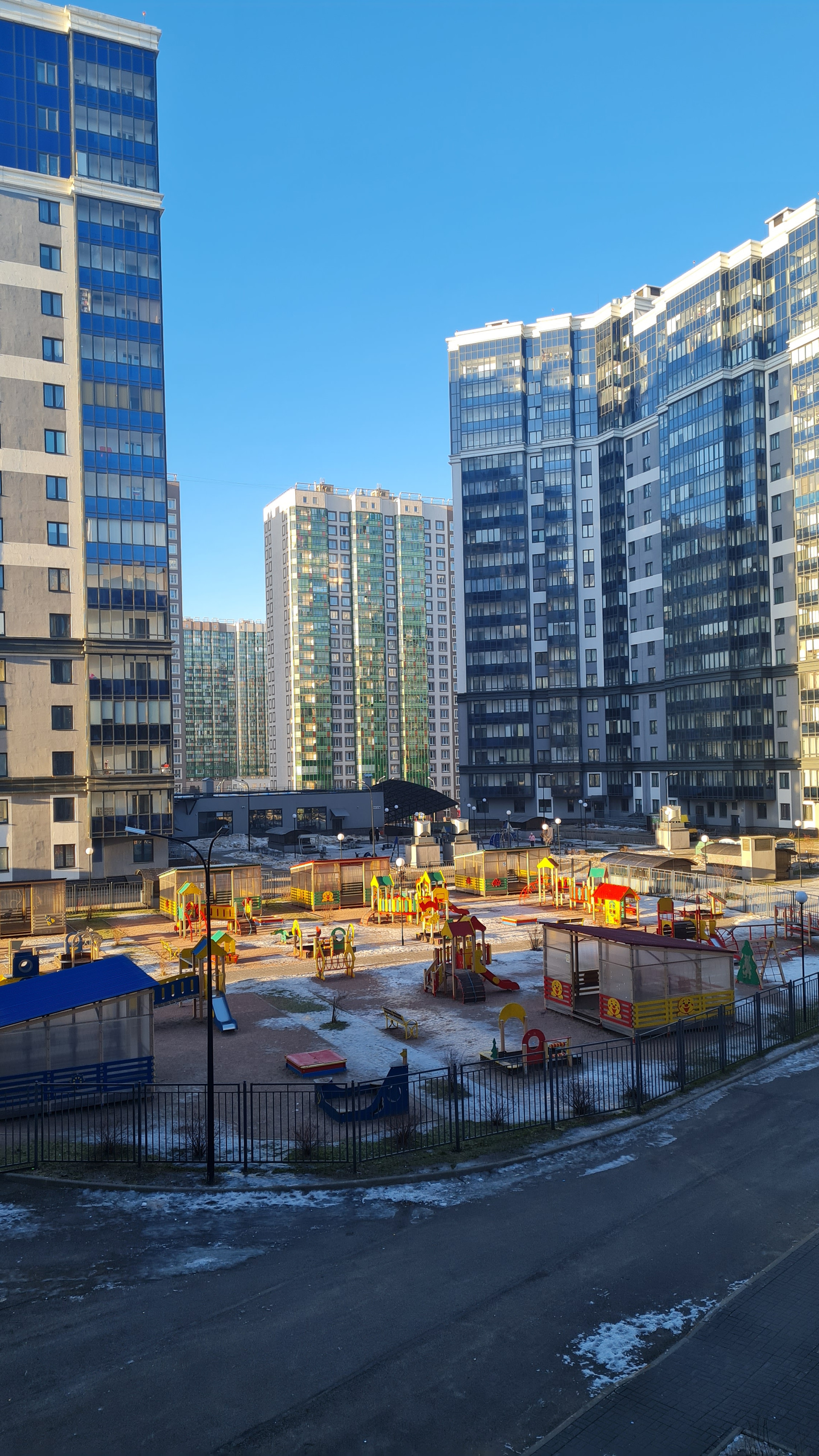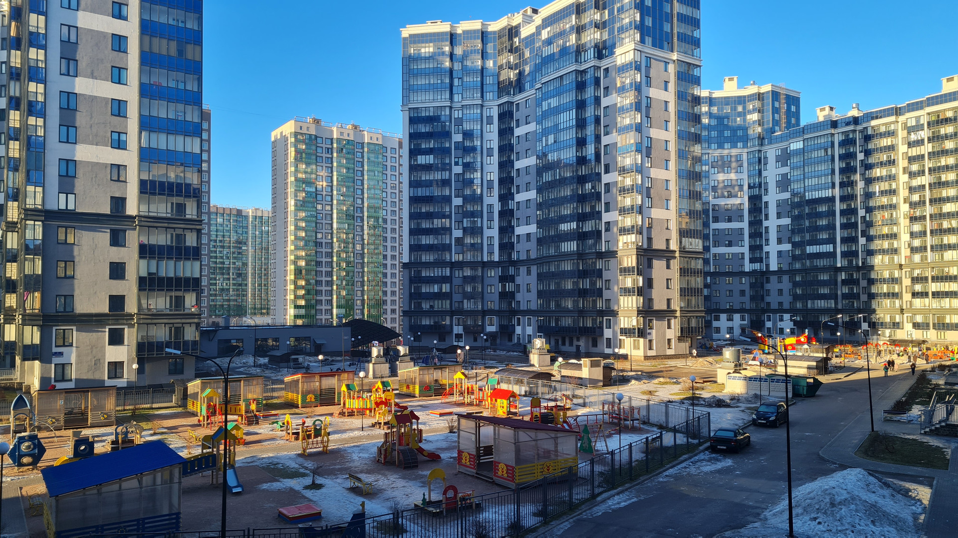 Район благополучный, метро рядом, сады, школы, любые магазины - тоже. В 2 минутах ходьбы строится торговый центр, выезд на КАД тоже очень близко. В самом доме есть фитнес-центр.