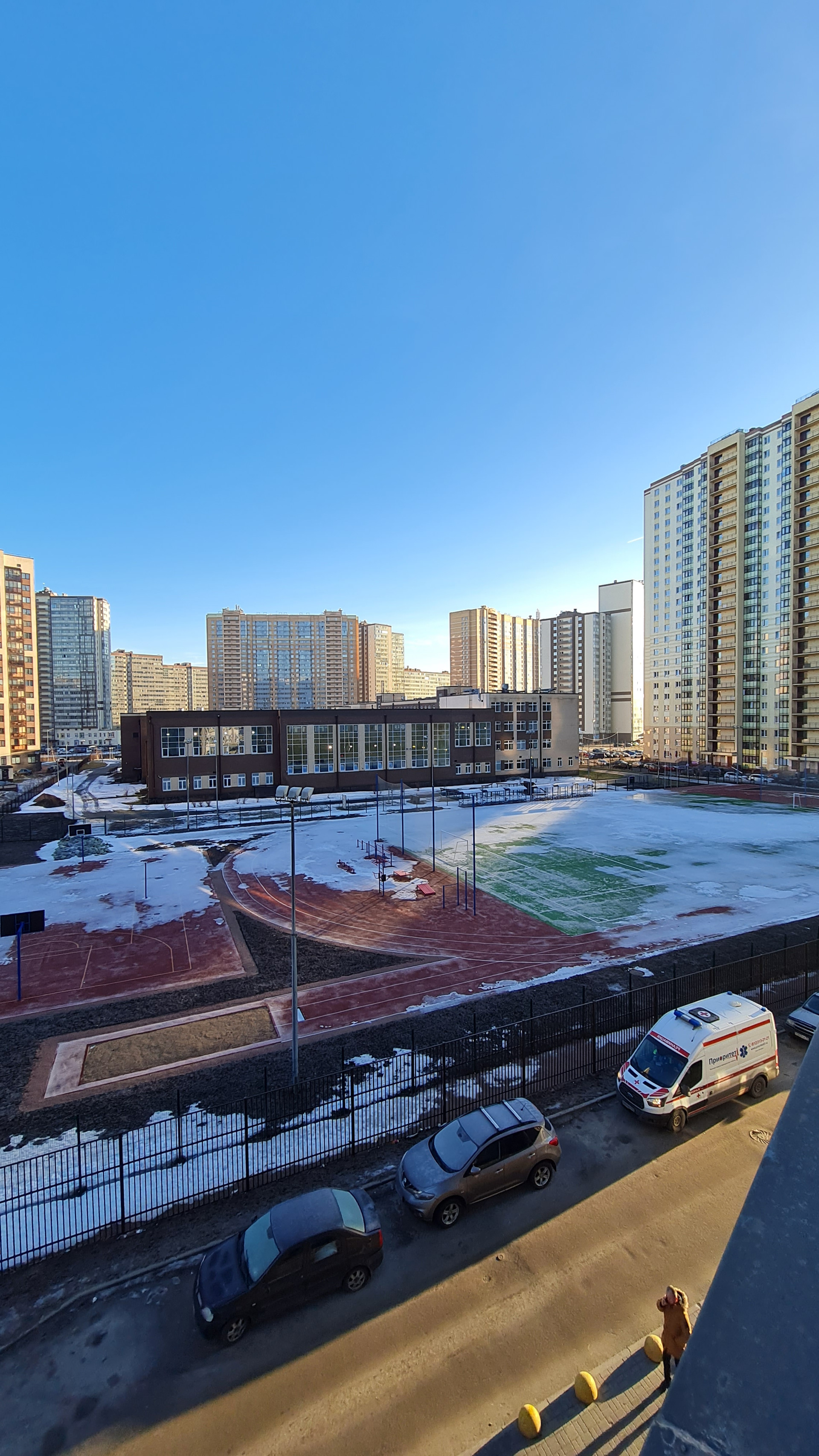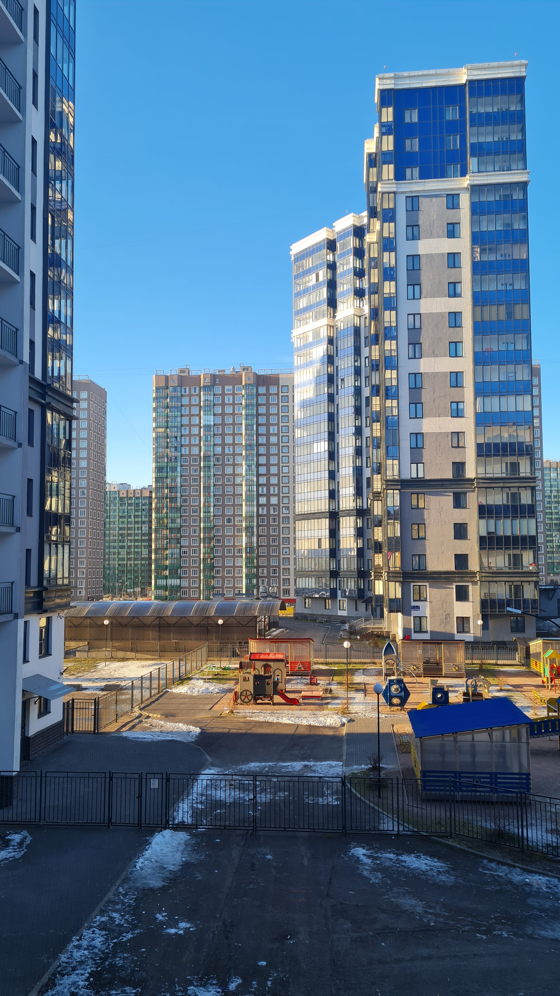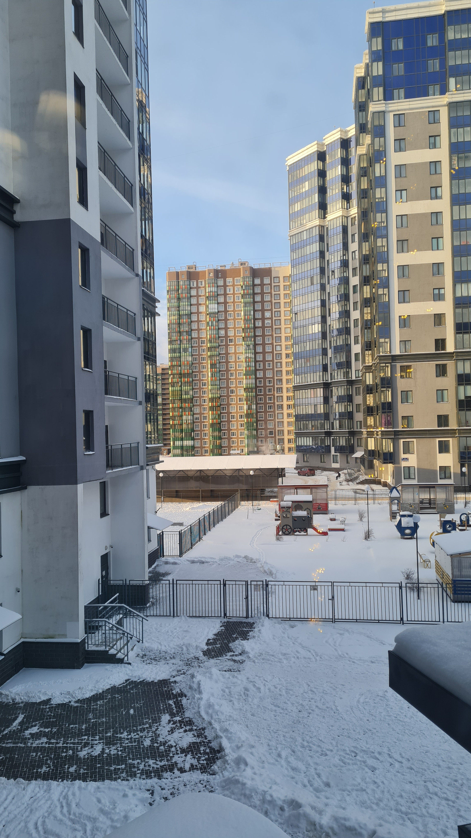В доме 2 входа. Парадная с лифтовыми зонами снаружи дома. А во внутренний двор можно спуститься по черной лестнице. Там детские, спортивные площадки, зоны отдыха с большими качелями, отдельная площадка для выгула питомцев, полное отсутствие машин! Оттуда есть лифт в паркинг.