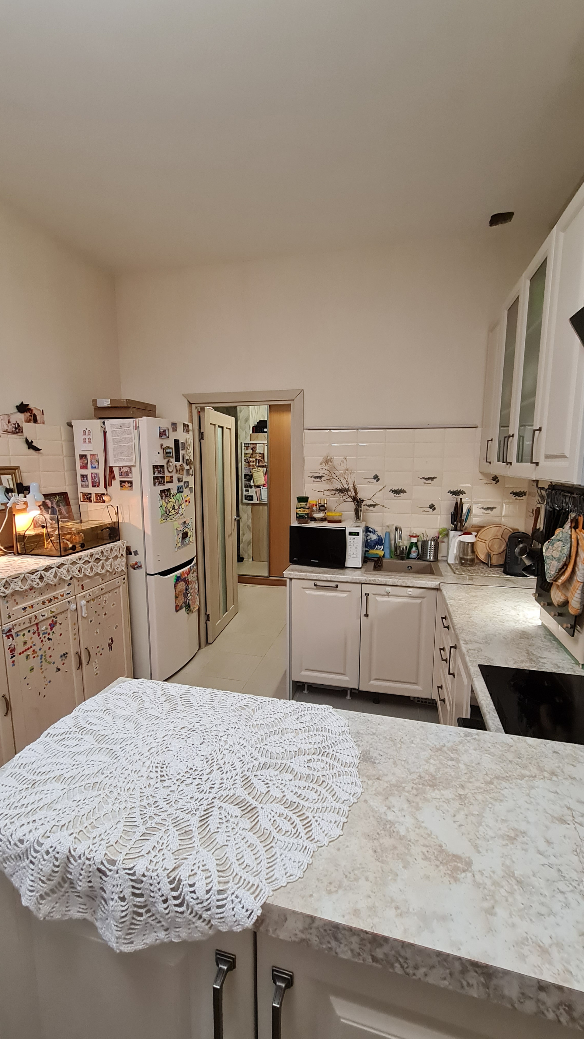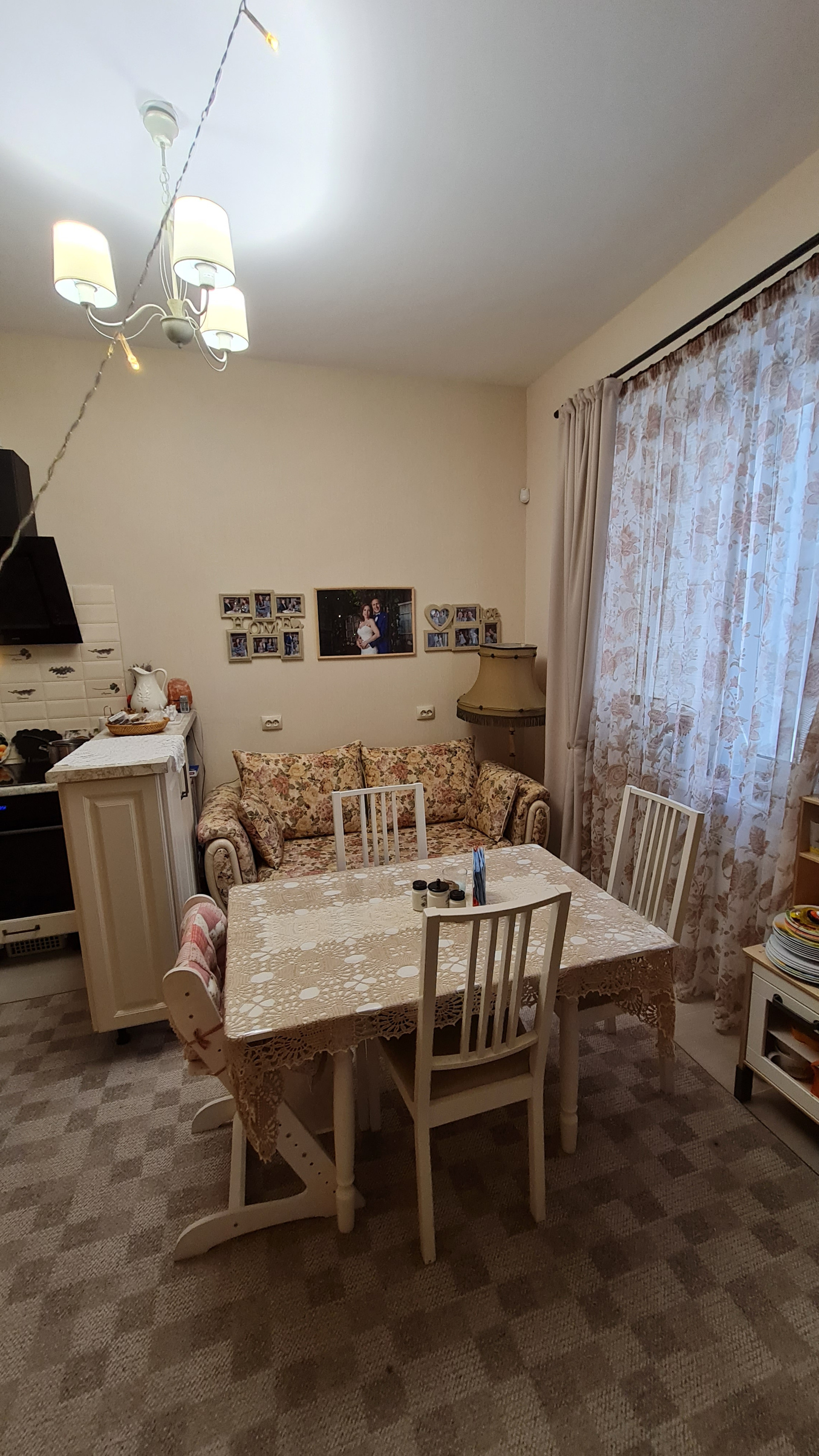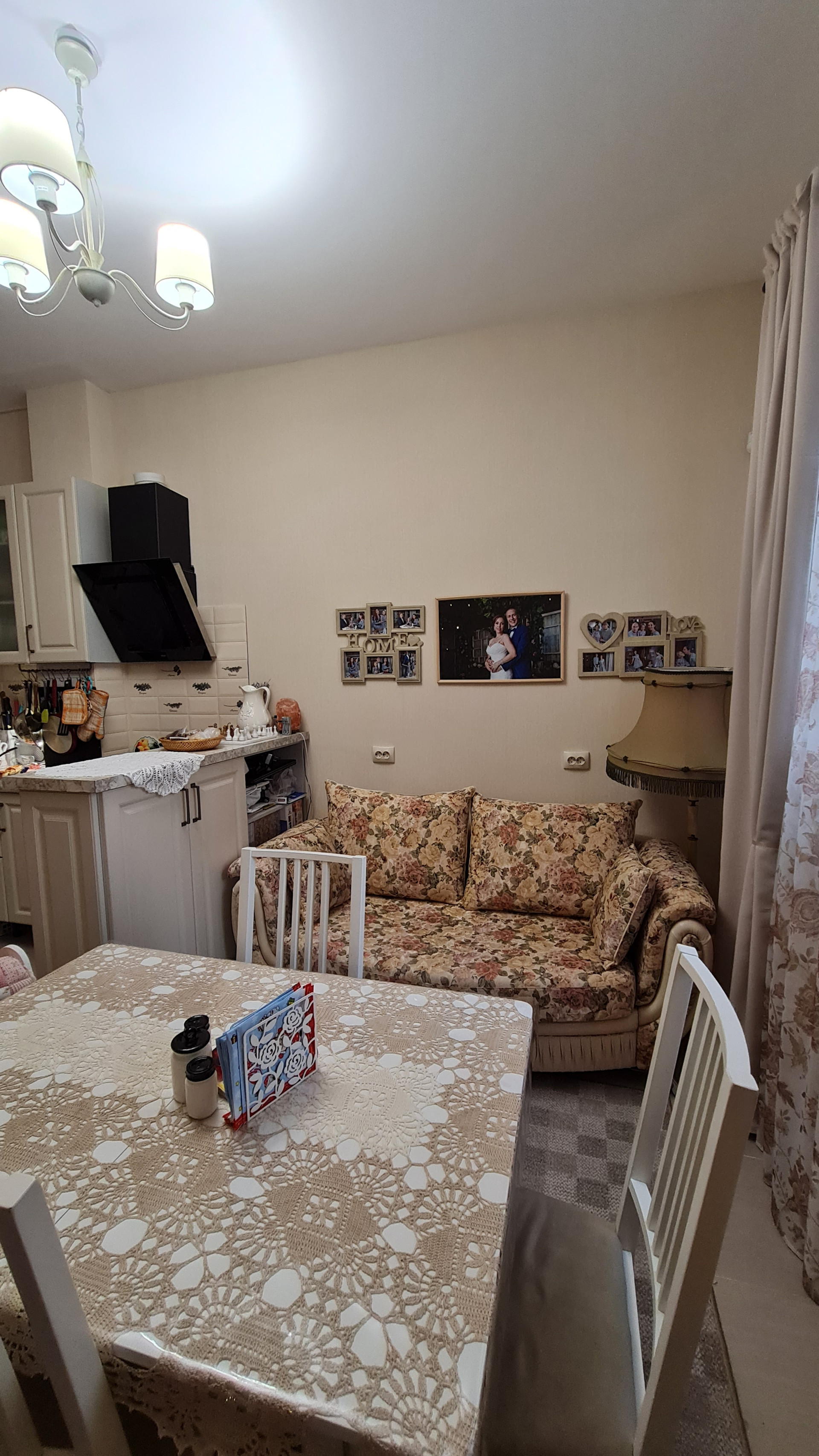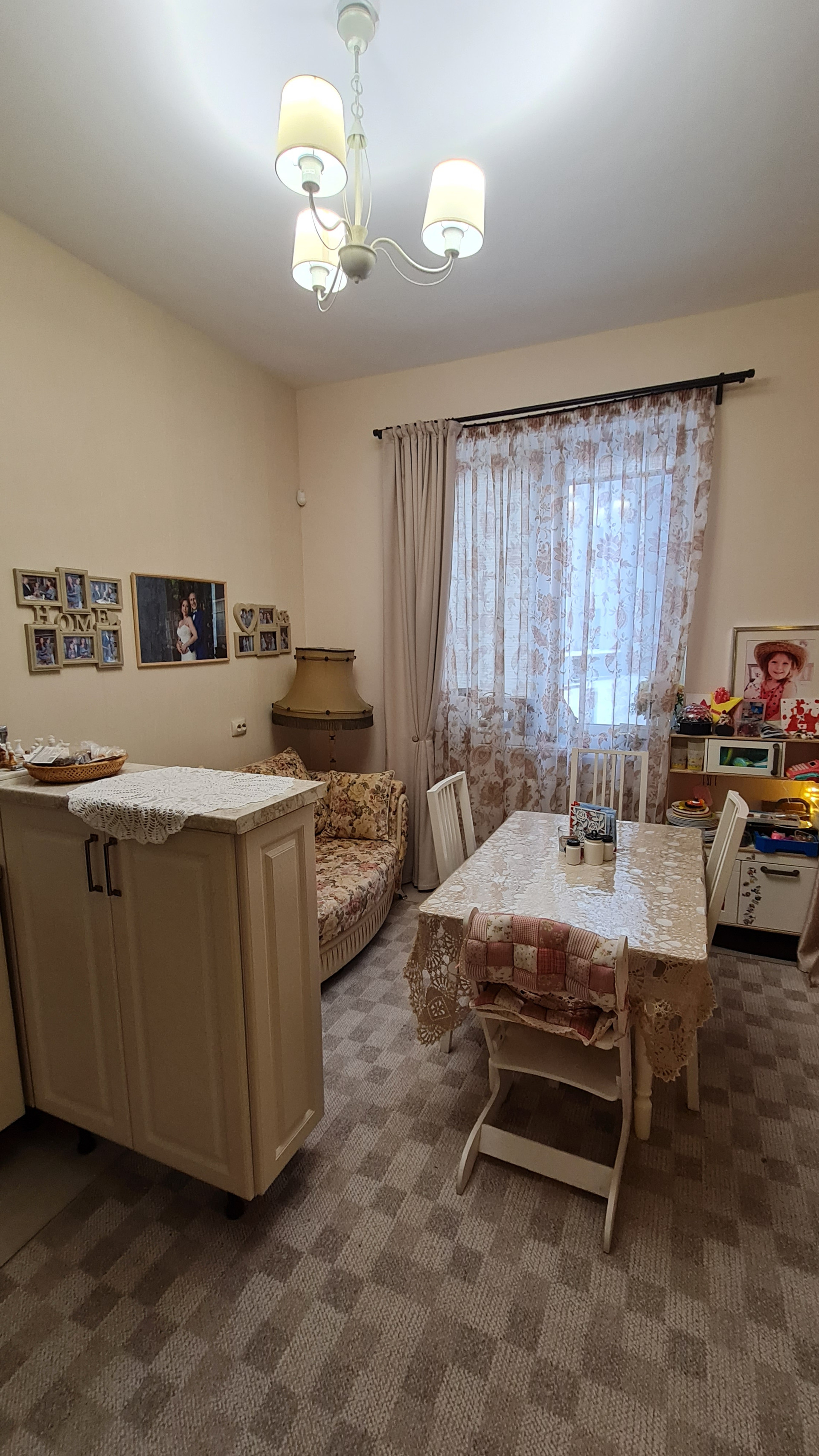 Перепланировок не было - такой продавалась от застройщика. Преимущество - большое общее помещение кухни и гостиной. Спокойно принимаем компании друзей и даже устраиваем детские праздники - все помещаются. При желании можно сделать перегородку или раздвижные двери. Т.к. помещение гостиной имеет отдельный вход.