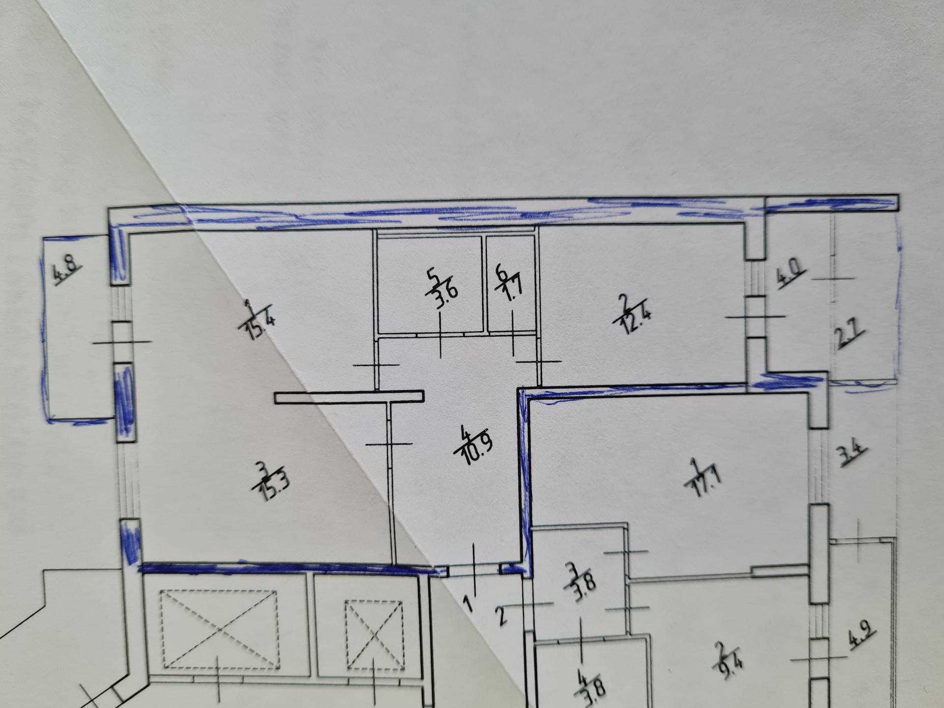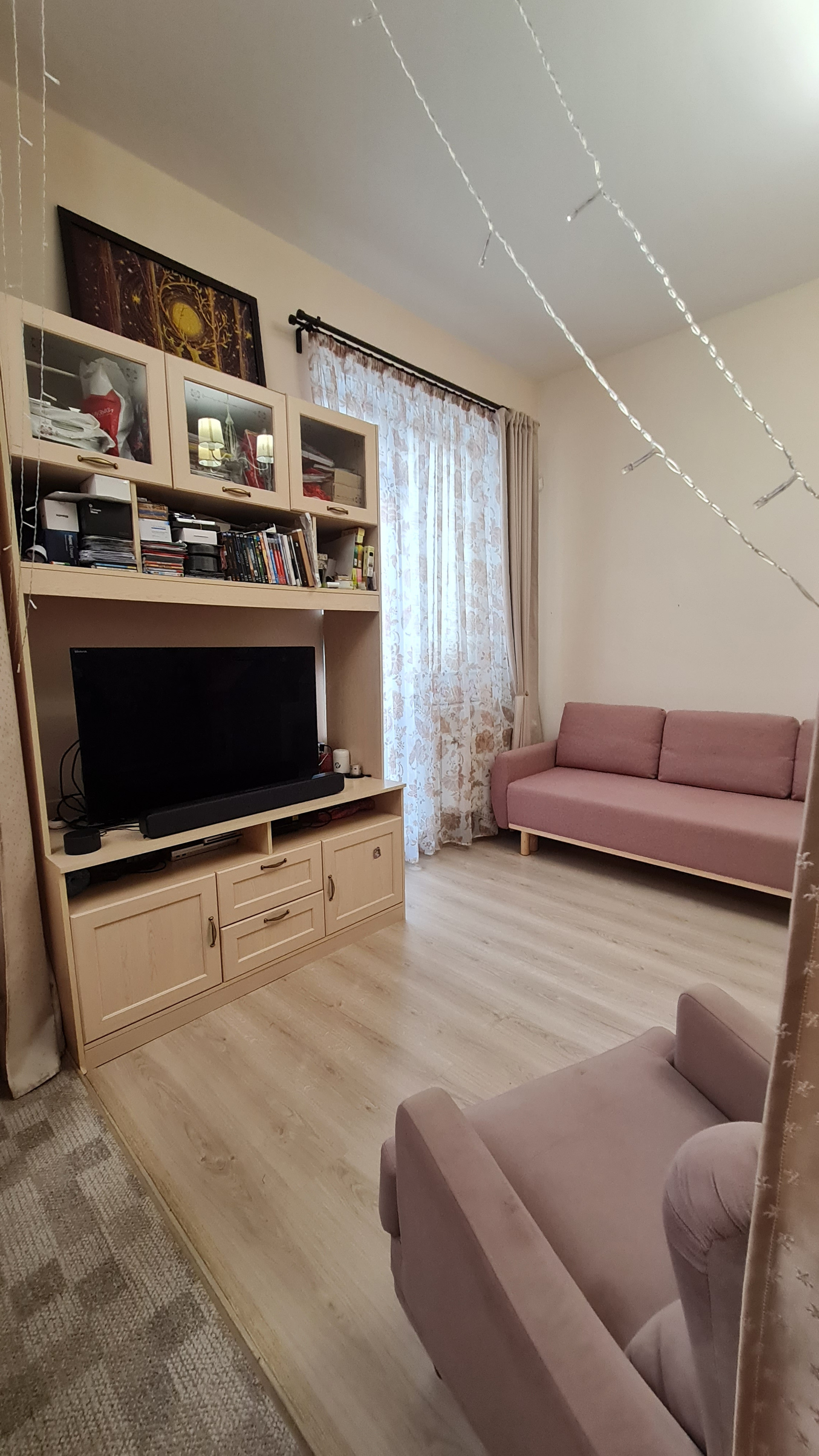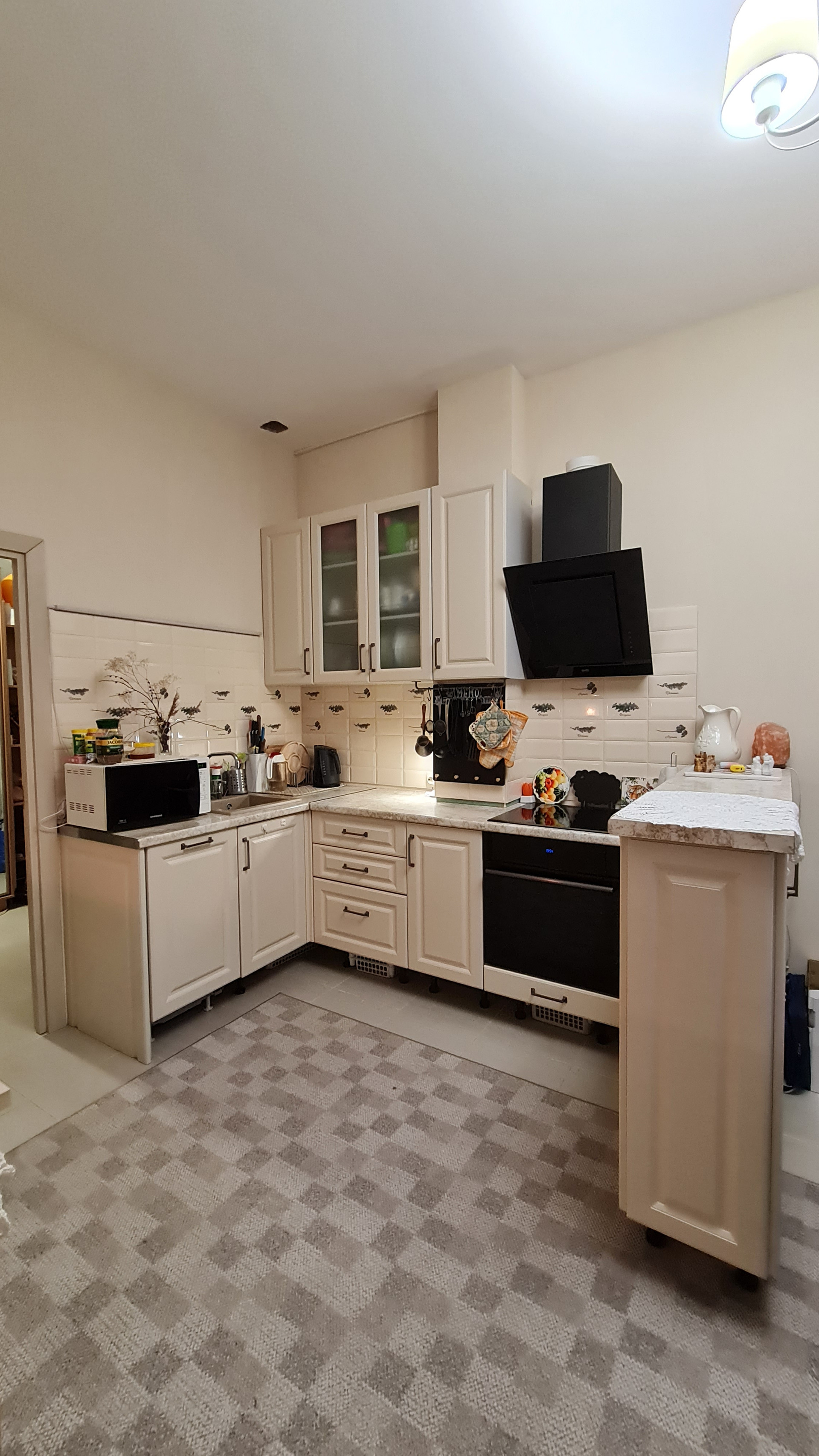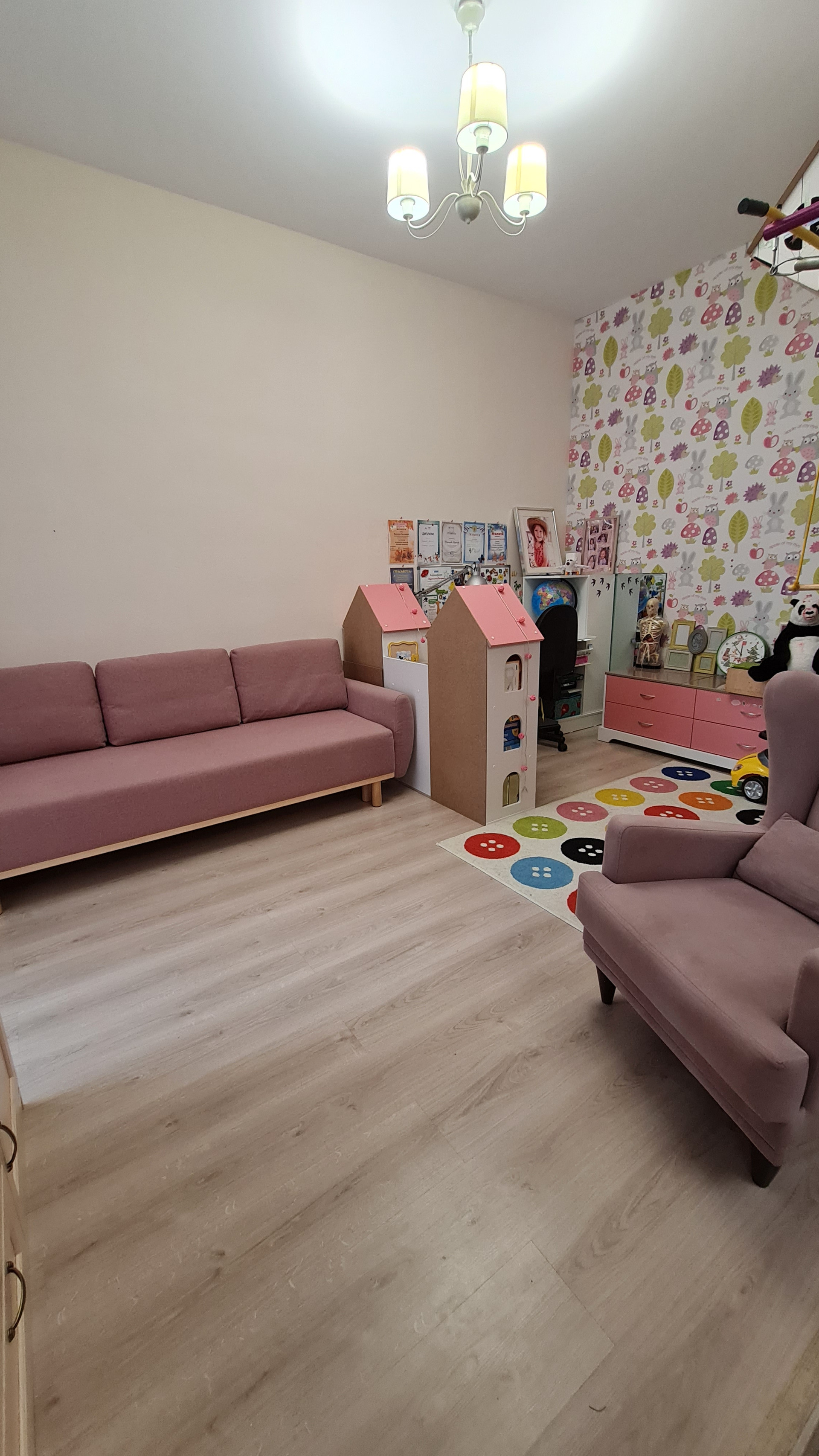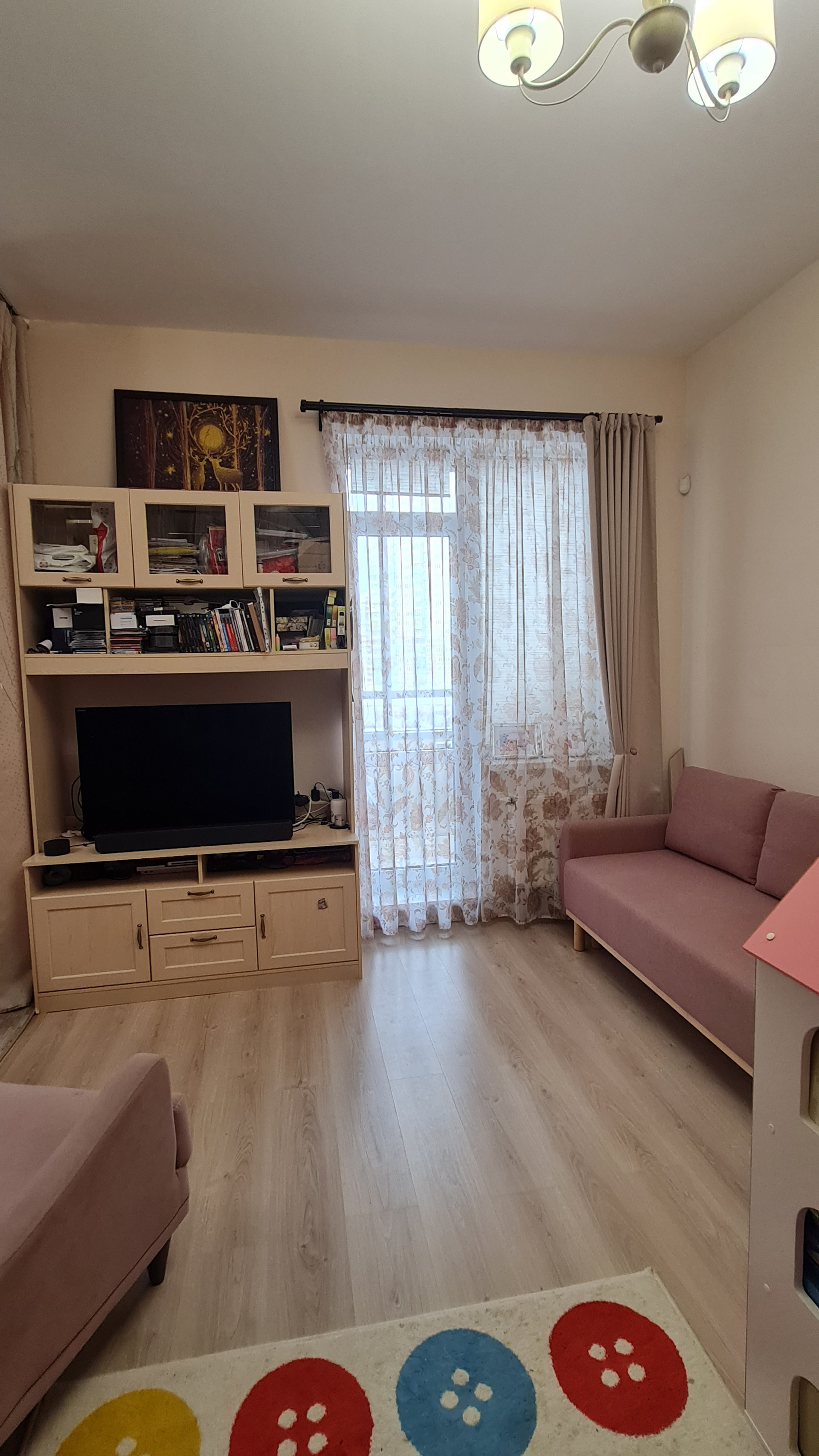 Перепланировок не было - такой продавалась от застройщика. Преимущество - большое общее помещение кухни и гостиной. Спокойно принимаем компании друзей и даже устраиваем детские праздники - все помещаются. При желании можно сделать перегородку или раздвижные двери. Т.к. помещение гостиной имеет отдельный вход.