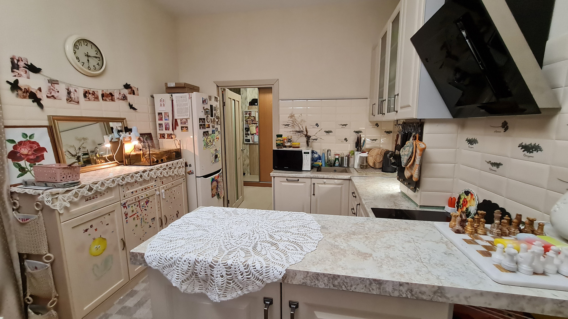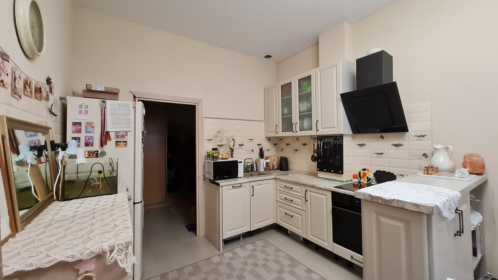 Ремонт, практически, везде сделали под себя, от застройщика мало что осталось. Удобная эргономичная кухня, плиточный фартук. Есть возможность переделать кухню - например, убрать стойку, она не прикреплена к стене. При продаже остается кухня, встроенная техника, большой стеллаж в туалете и, при желании, шкаф в коридоре.