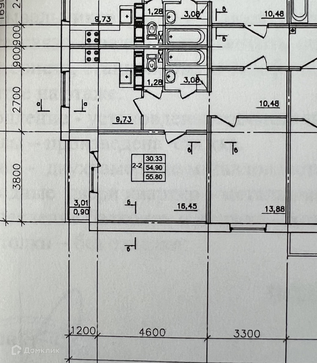Общая площадь 54.9 м2