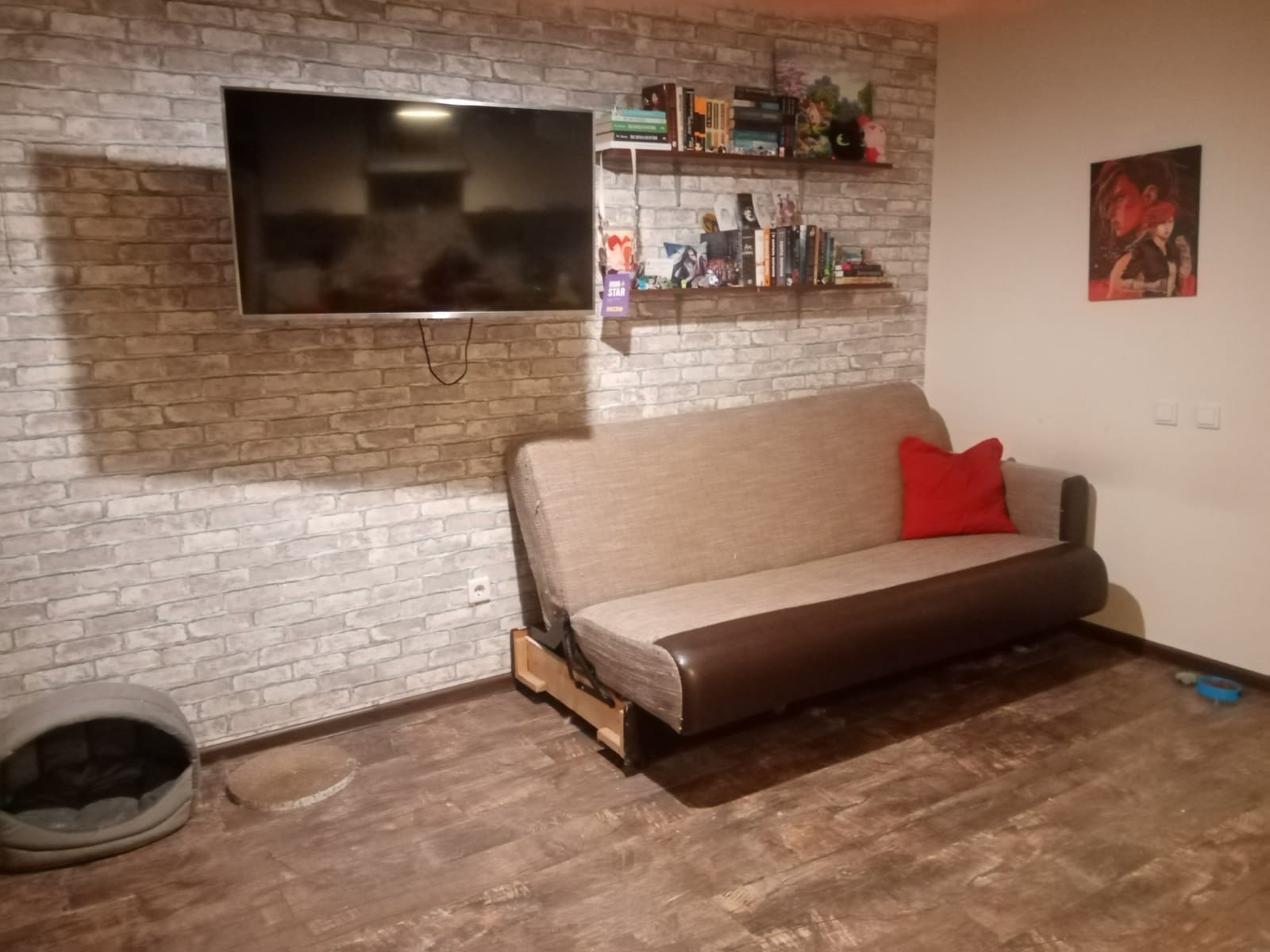 Квартира студия, с отличным ремонтом в стиле Лофт,В подъезде 4 ЛИФТА (два грузовых)метро в пешей доступности,10 минут быстрым шагом,  все делали сами, с душой для себя,использовались дорогие материалы. Прекрасный вид на реку Охта, не во двор , а на красивый закат и на речку, номер дома 19.Могу оставить мебель и частично технику,(заезжай и живи,никаких вложений),Квартира продаётся в связи покупкой дома., Один собственник  никто не прописан.ТОРГ.уместен,цену обсуждаем