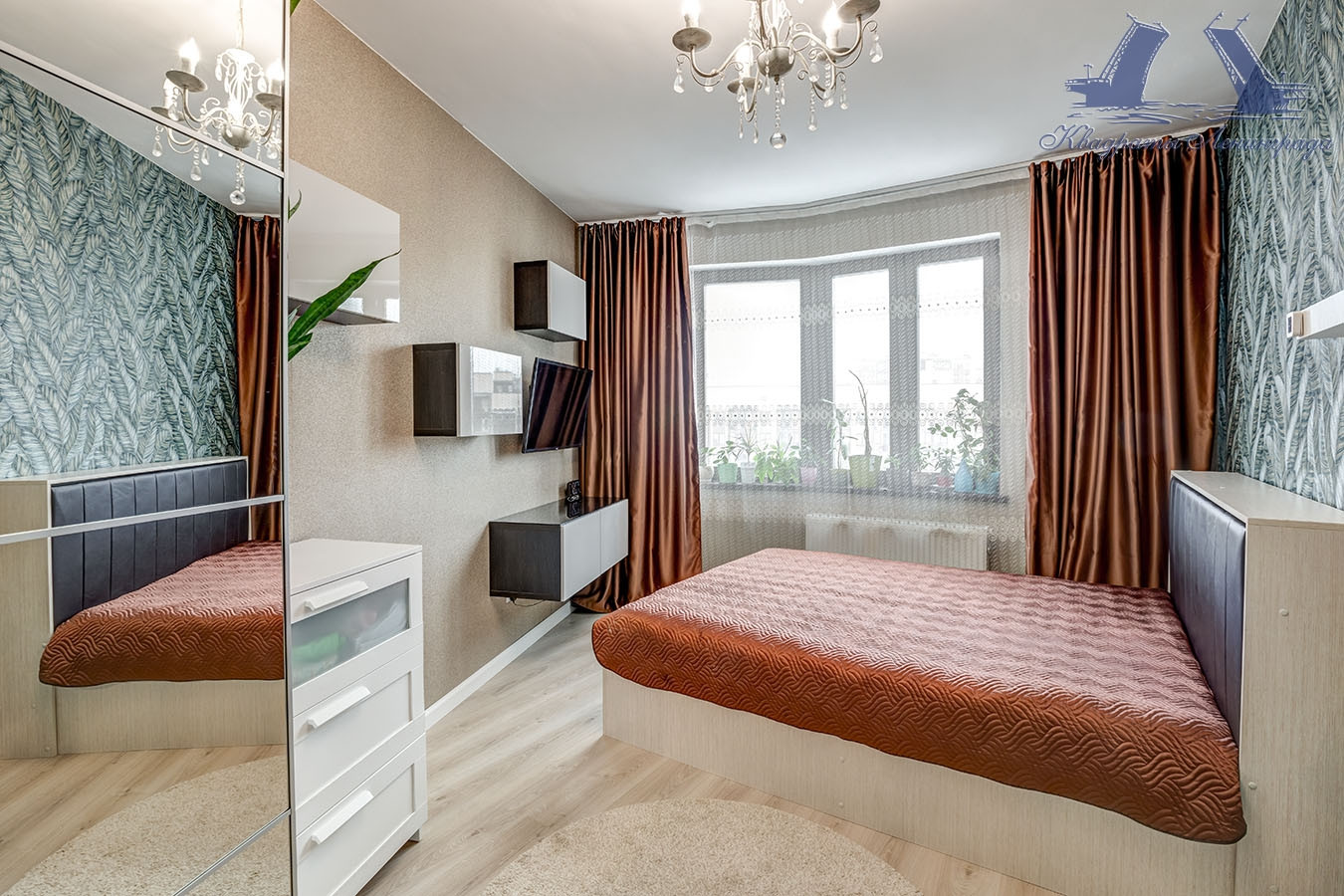 Удобная евро планировка позволила оборудовать кухню - гостиную, в которой нашлось место и для современного кухонного гарнитура, и для большого дивана. Продуманно использованы и преимущества французского окна, ведущего на балкон с панорамным остеклением - сидя с чашкой кофе за барной стойкой, вы можете любоваться открывающимися с высокого этажа просторами!
