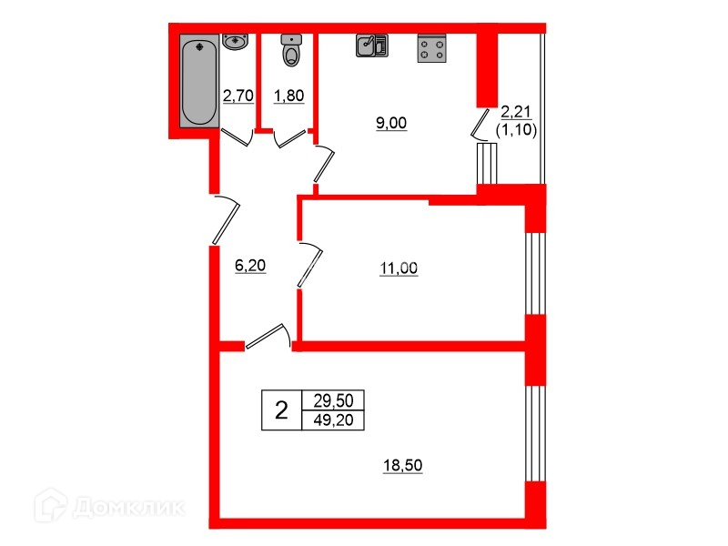 Общая площадь 49.2 м2