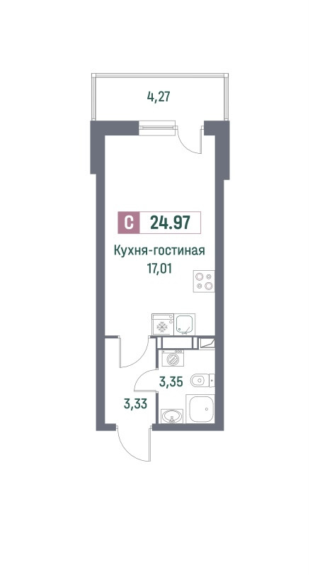 Общая площадь 24 м2