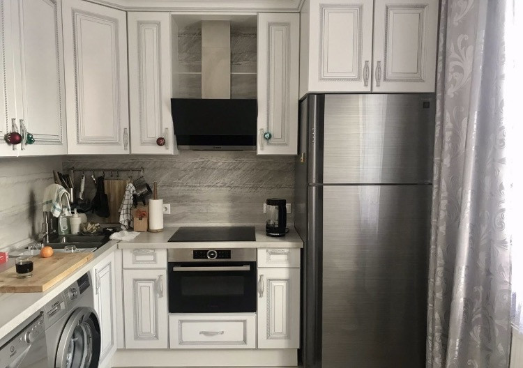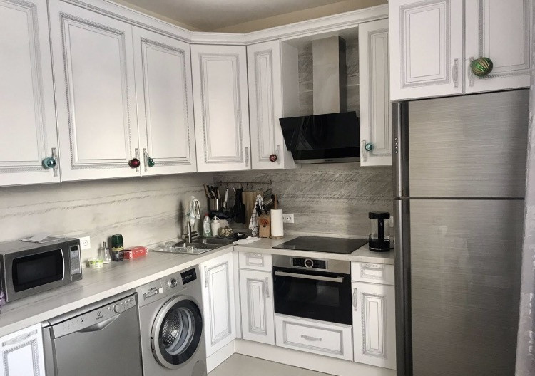 На кухне установлена система очистки воды с отдельным краном для питьевой воды. Кухня со встроенной бытовой техникой (в том числе посудомоечной и стиральной машиной) и холодильником остаётся в подарок новым собственникам.