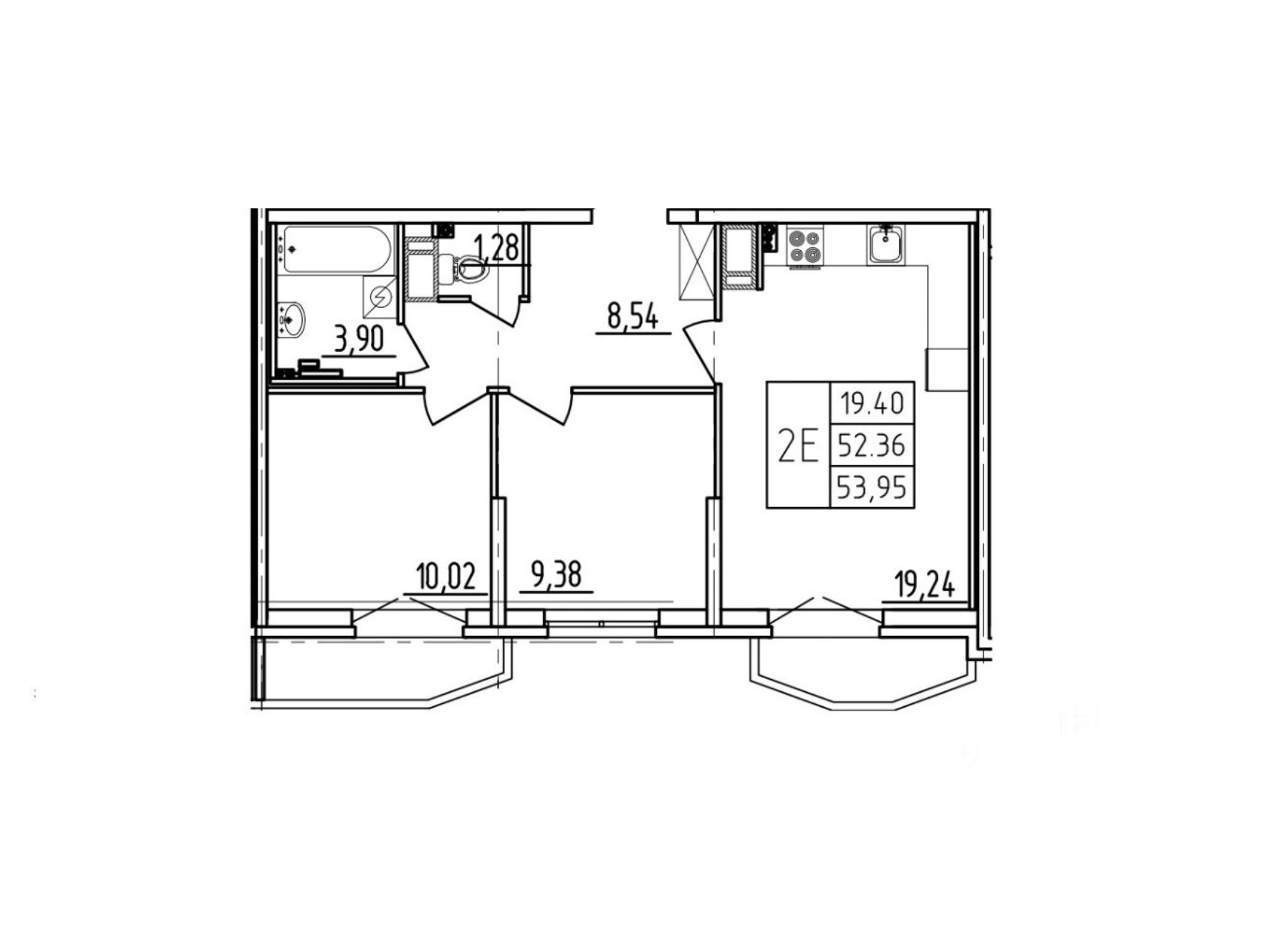 Общая площадь 52.36 м2