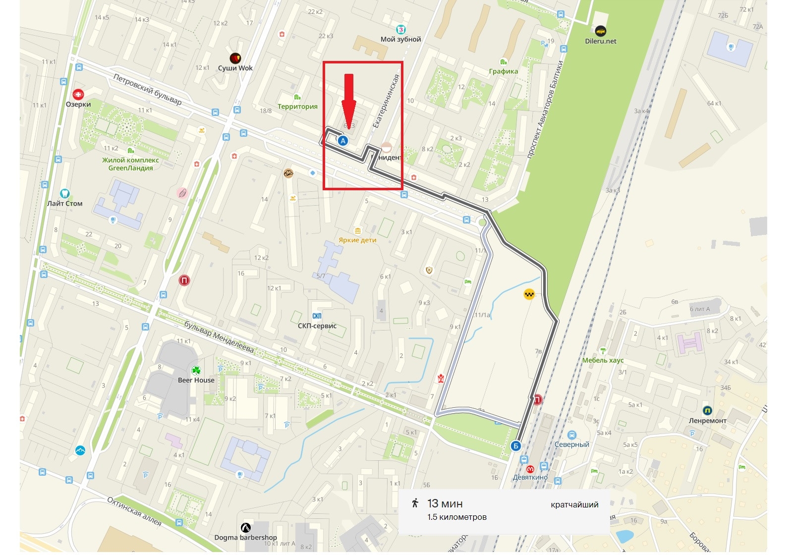 13 минут пешком до Метро Девяткино!