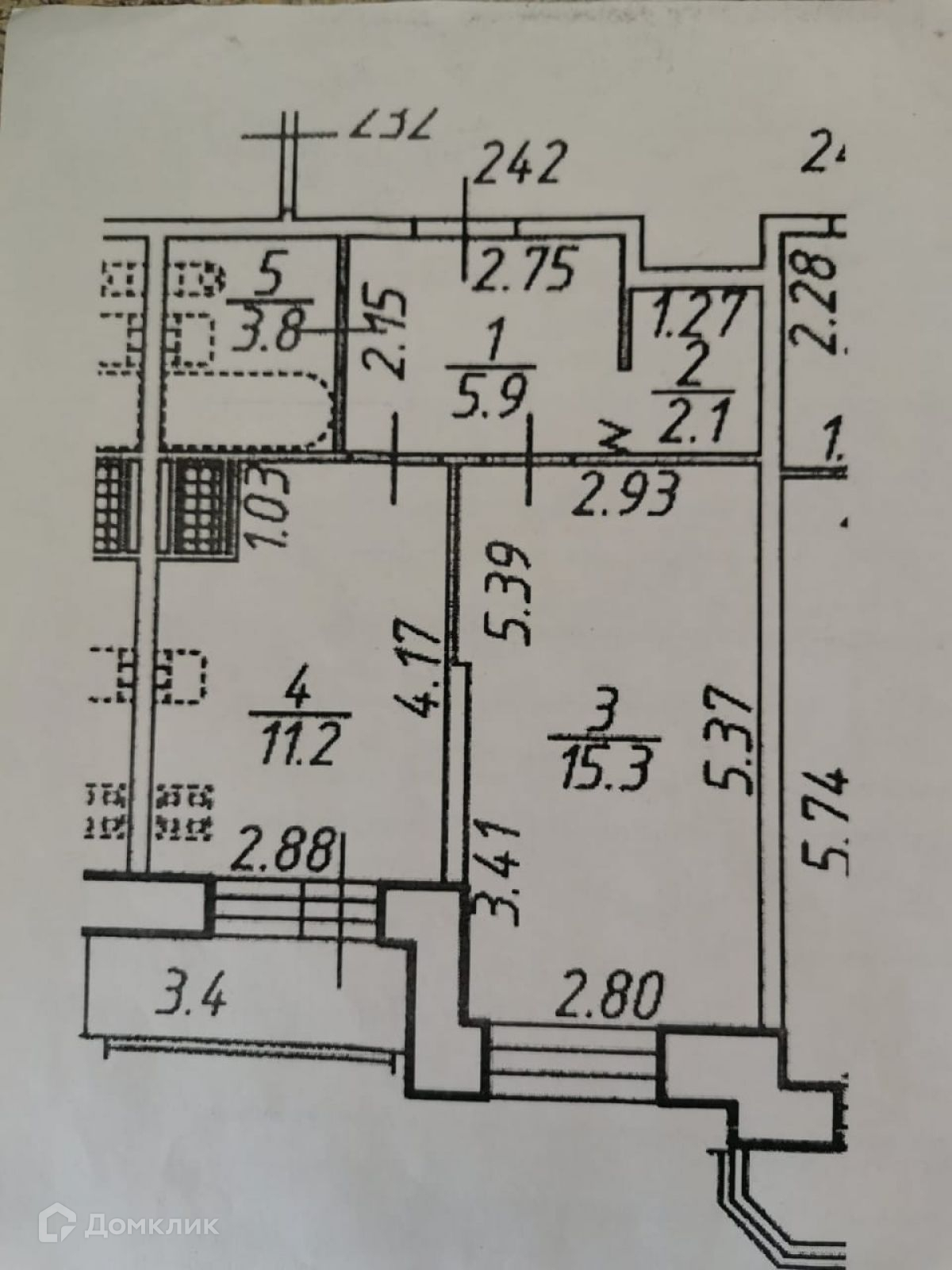 Жилая площадь 15.3 м2