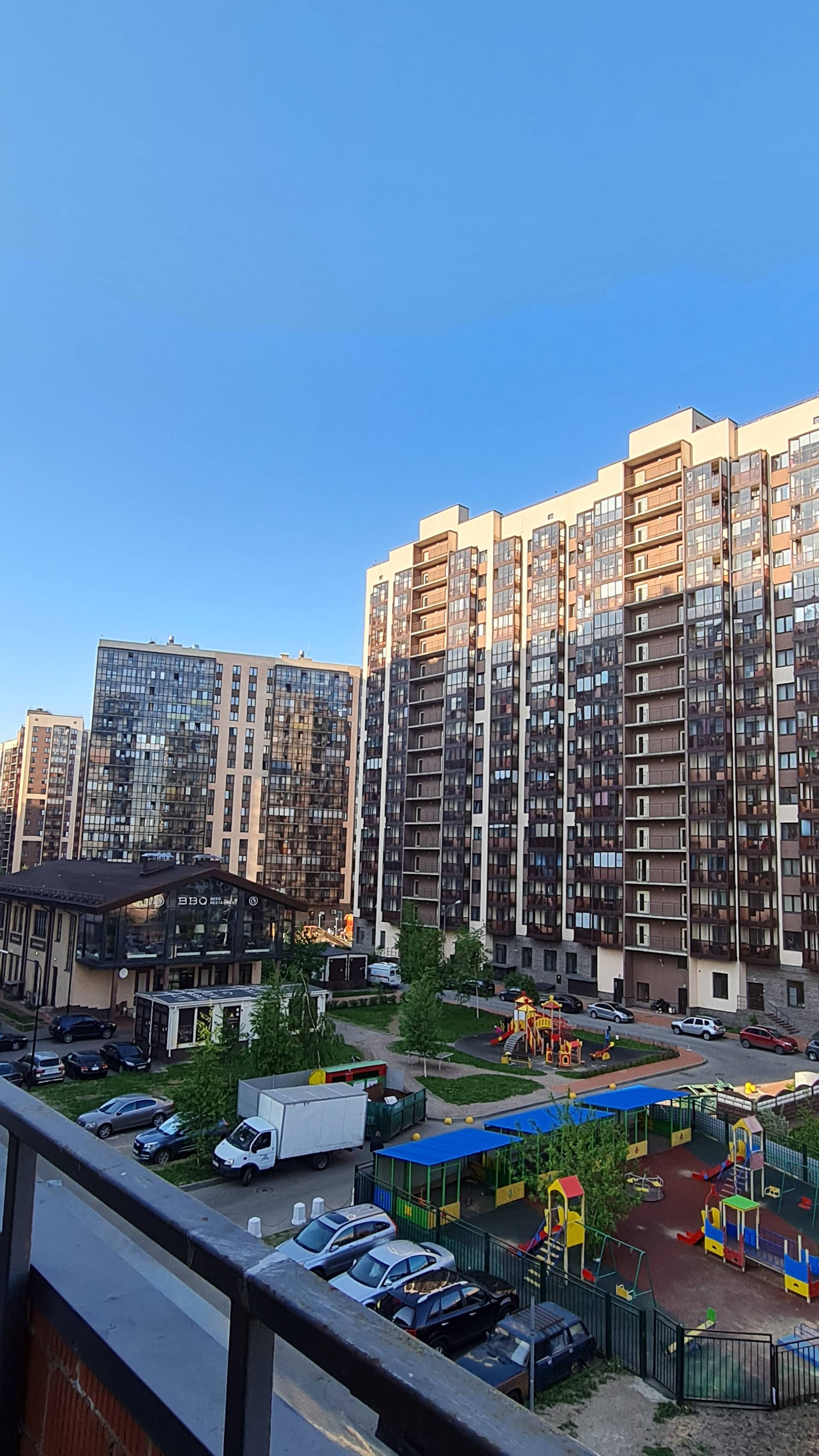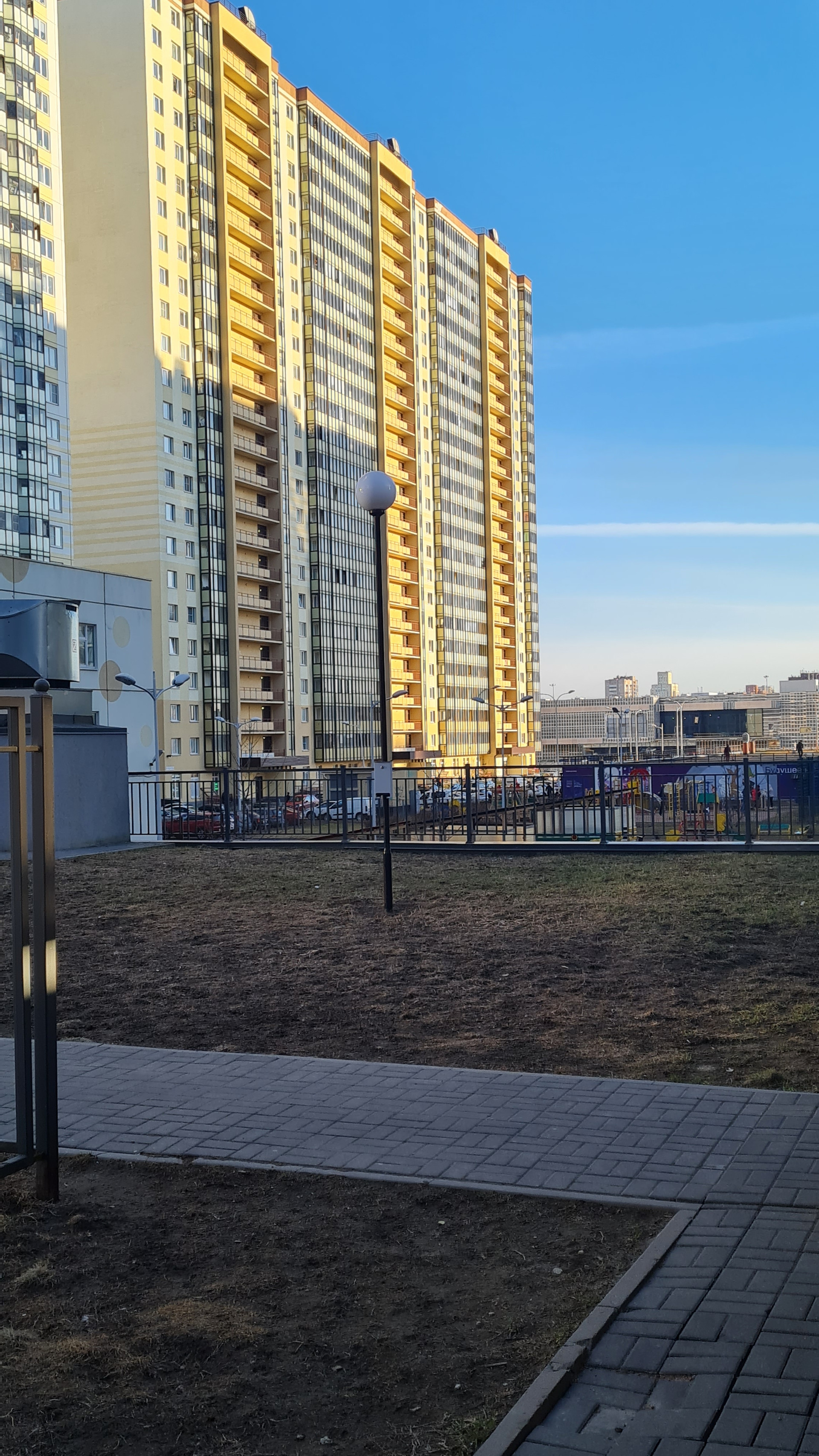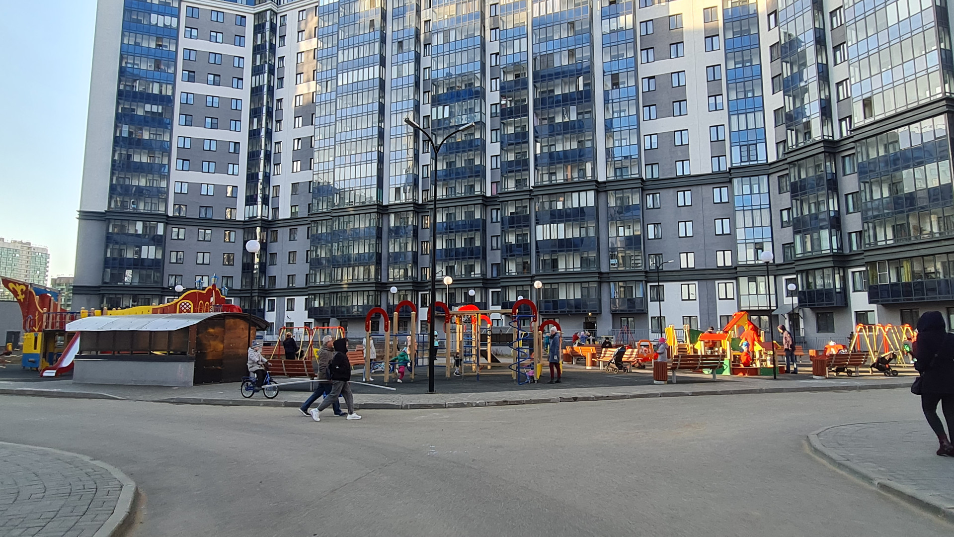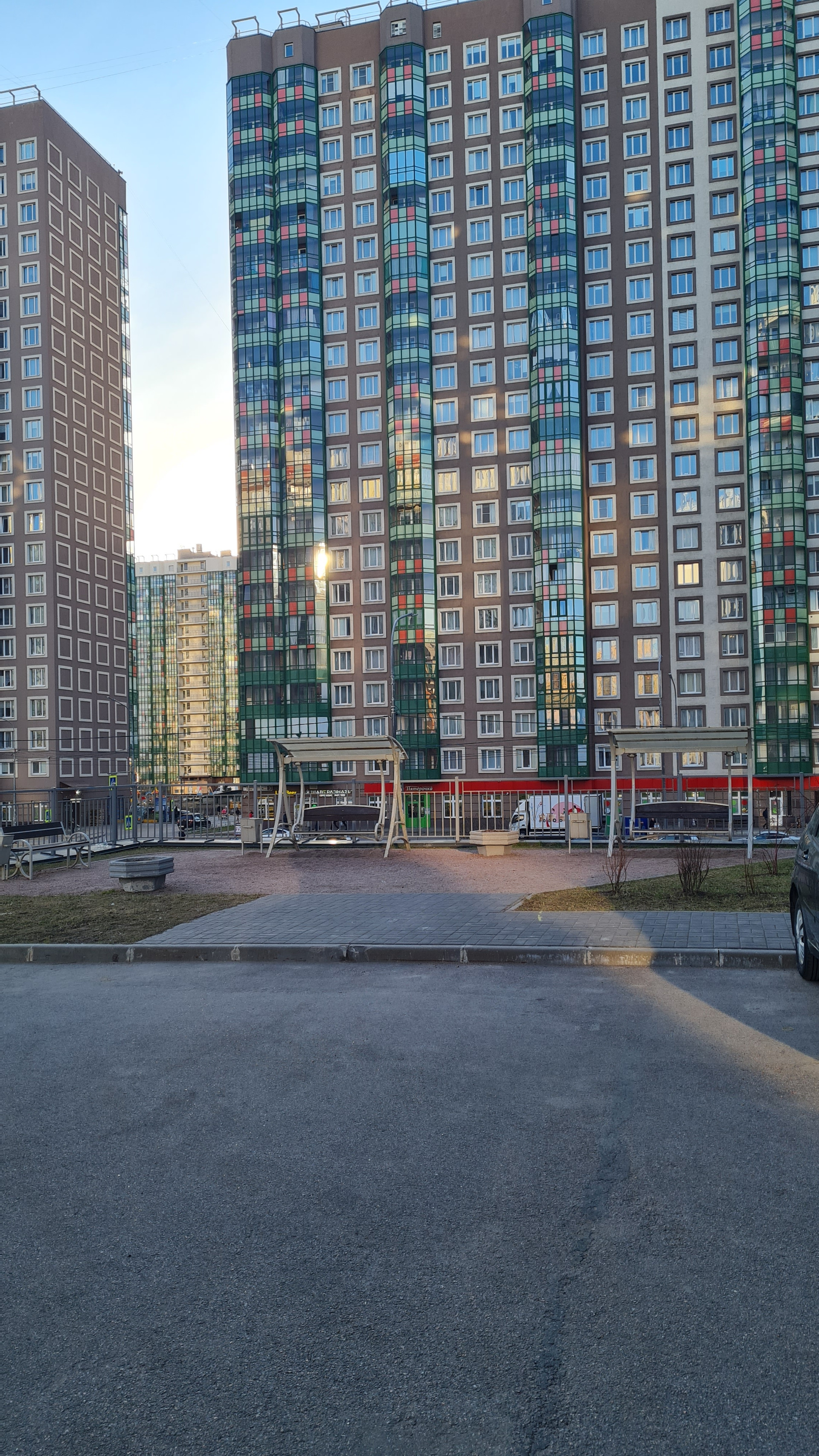 В доме 2 входа. Парадная с лифтовыми зонами снаружи дома. А во внутренний двор можно спуститься по черной лестнице. Там детские, спортивные площадки, зоны отдыха с большими качелями, отдельная площадка для выгула питомцев, полное отсутствие машин! Оттуда есть лифт в паркинг.