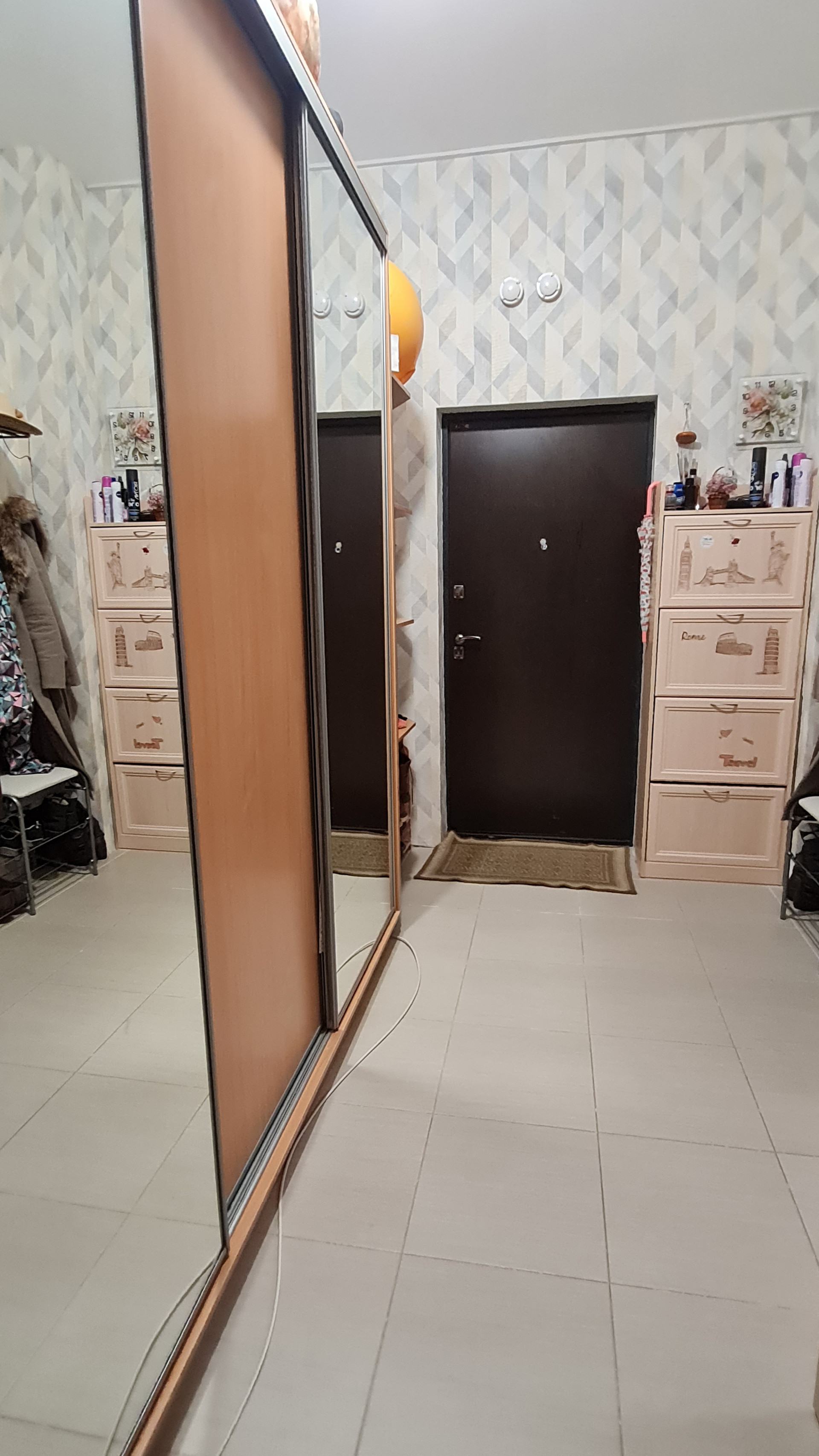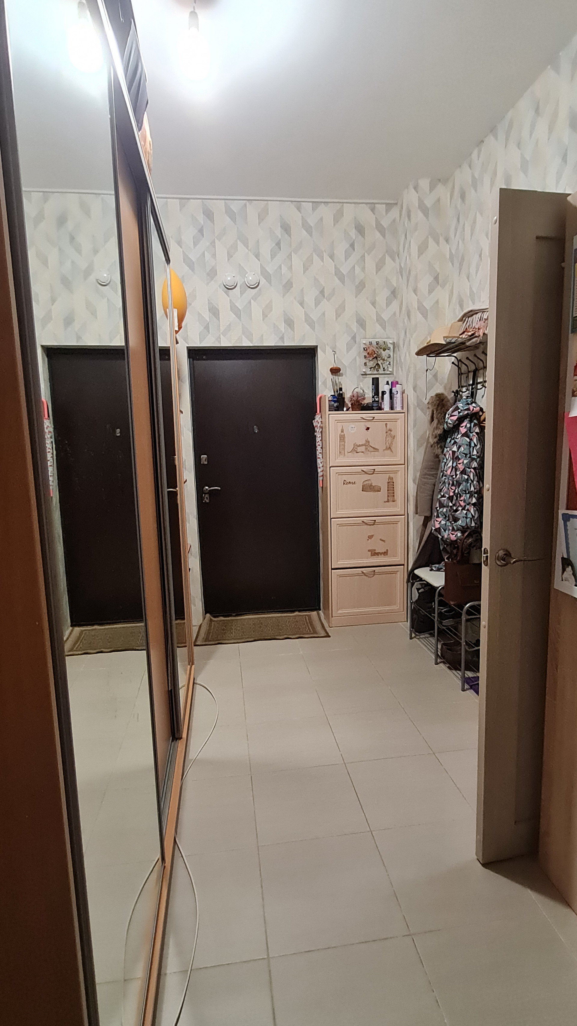 Санузел раздельный; просторный холл, где помещаются огромный шкаф для одежды и шкаф для хранения инструментов и бытовых мелочей - на фото не видно, покажу при просмотре. Есть возможность также отделить кладовку. В санузле тоже за шторой помещается стеллаж для хранения.