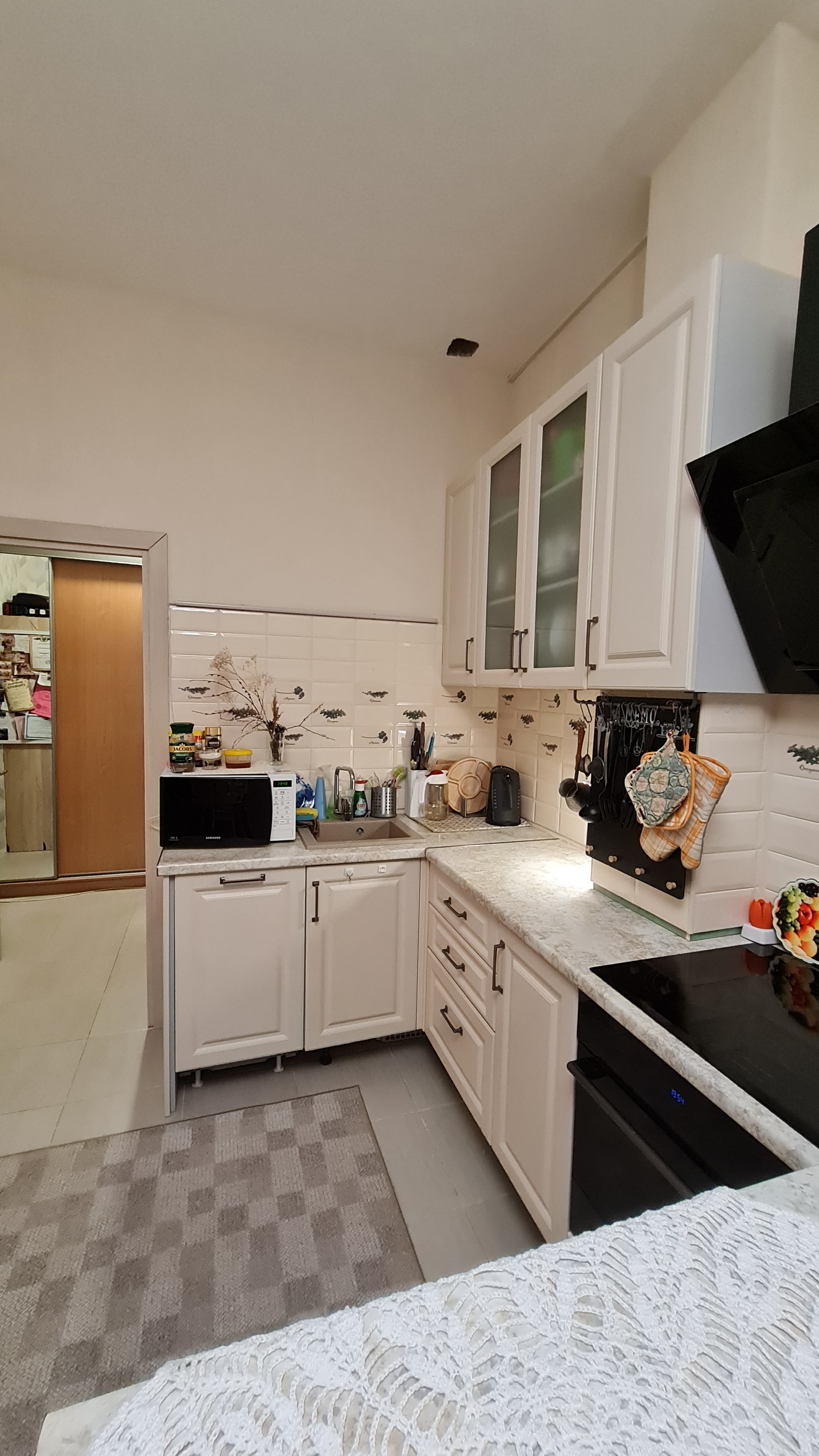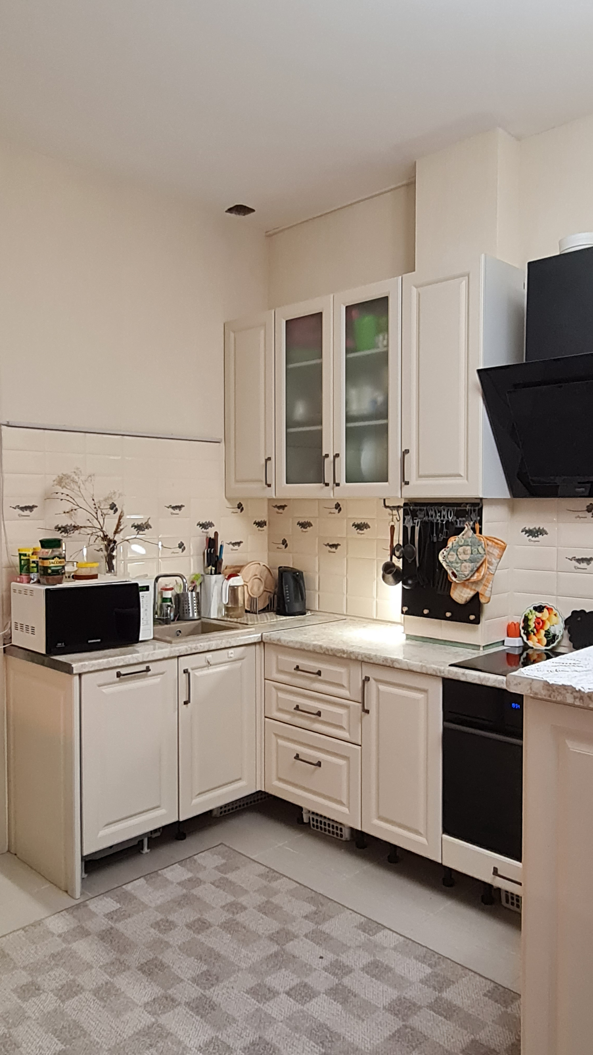 Ремонт, практически, везде сделали под себя, от застройщика мало что осталось. Удобная эргономичная кухня, плиточный фартук. Есть возможность переделать кухню - например, убрать стойку, она не прикреплена к стене. При продаже остается кухня, встроенная техника, большой стеллаж в туалете и, при желании, шкаф в коридоре.
