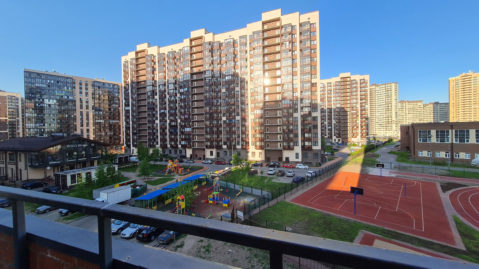 Район благополучный, метро рядом, сады, школы, любые магазины - тоже. В 2 минутах ходьбы строится торговый центр, выезд на КАД тоже очень близко. В самом доме есть фитнес-центр. В 20 минутах ходьбы открыта большая детская больница со стационаром.