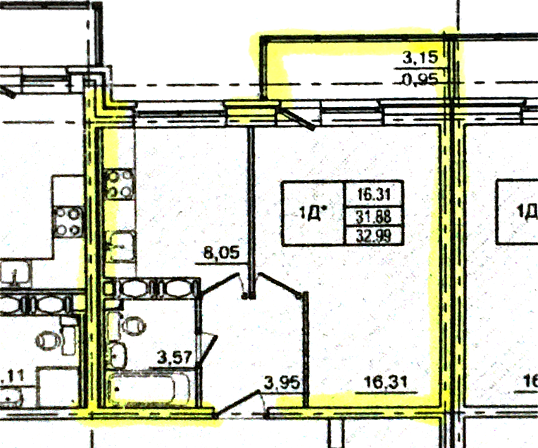 Жилая площадь 16.31 м2