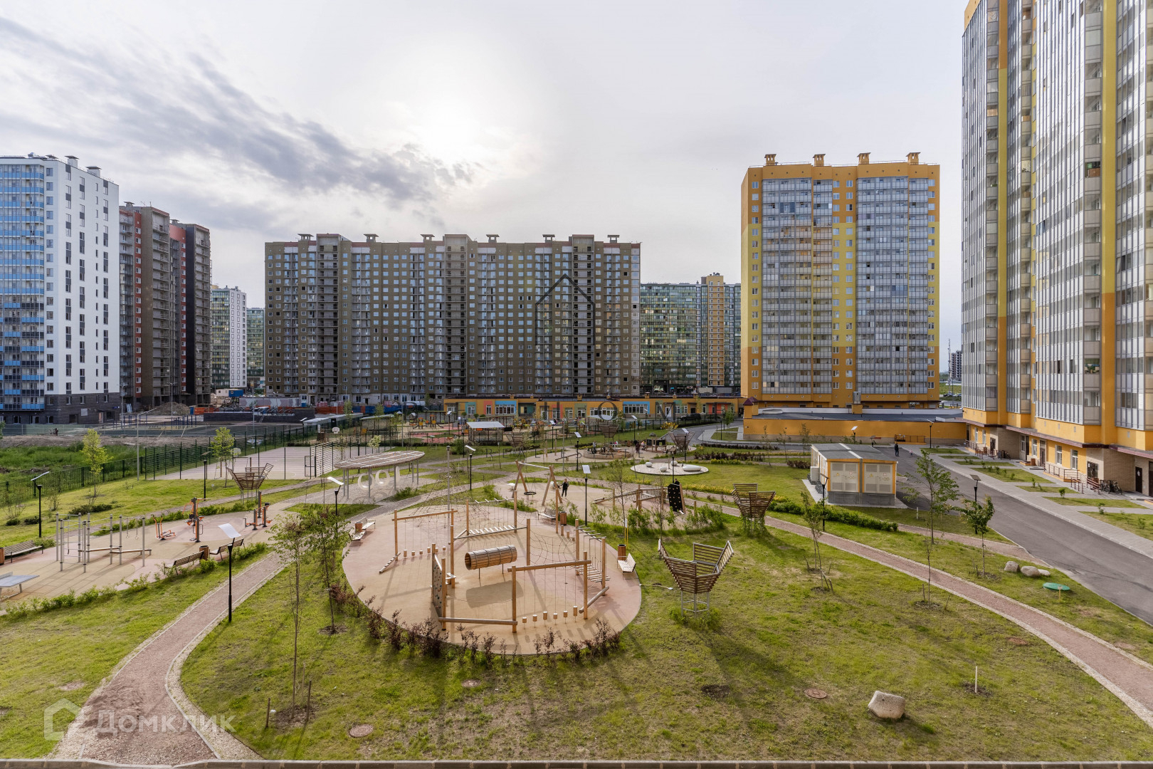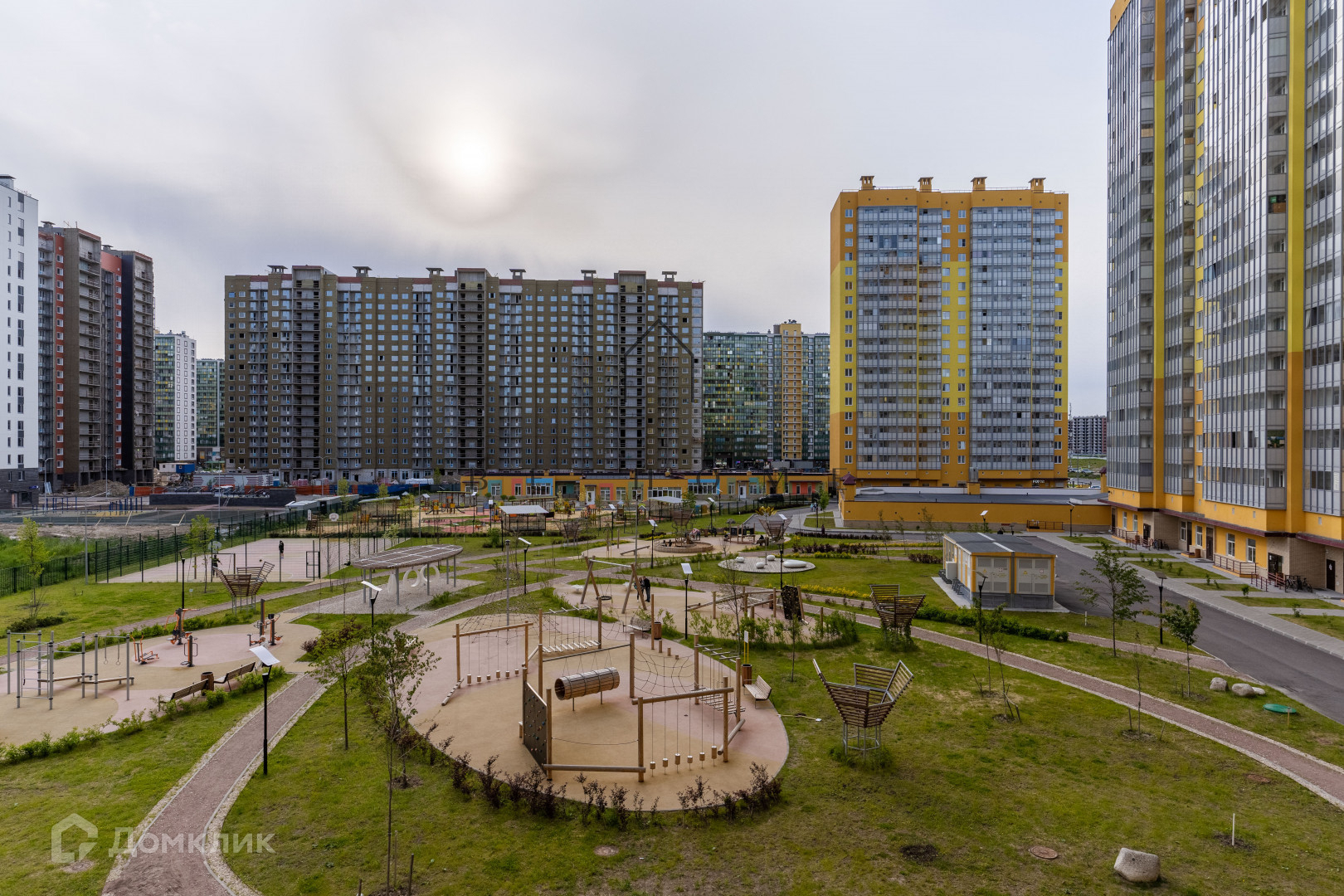 Экологичные фасады, крытый паркинг, просторная детская площадка.