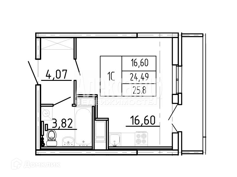 Общая площадь 25.8 м2