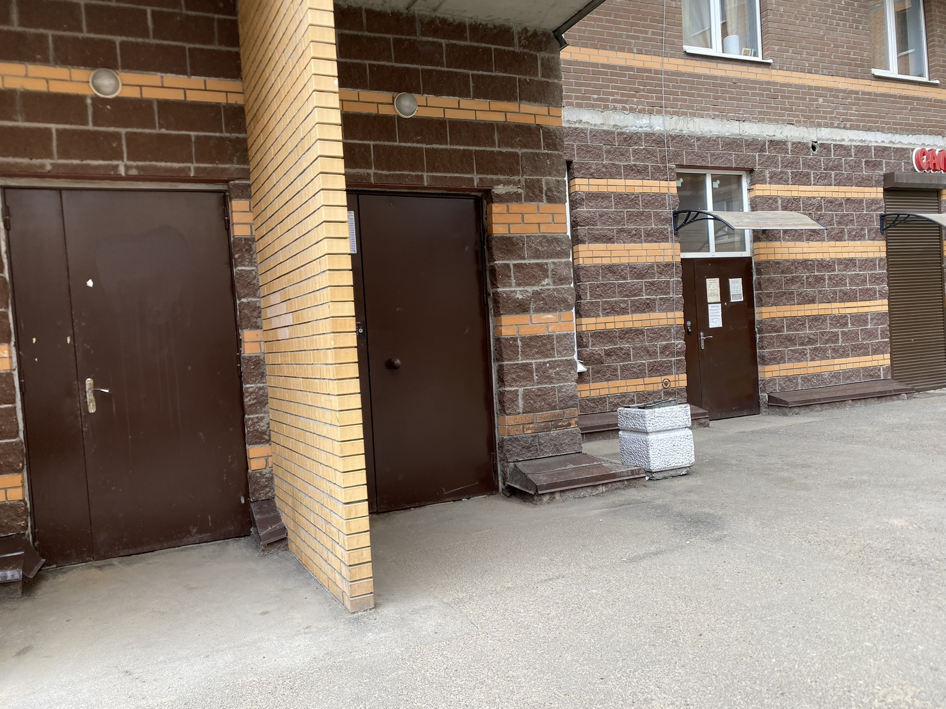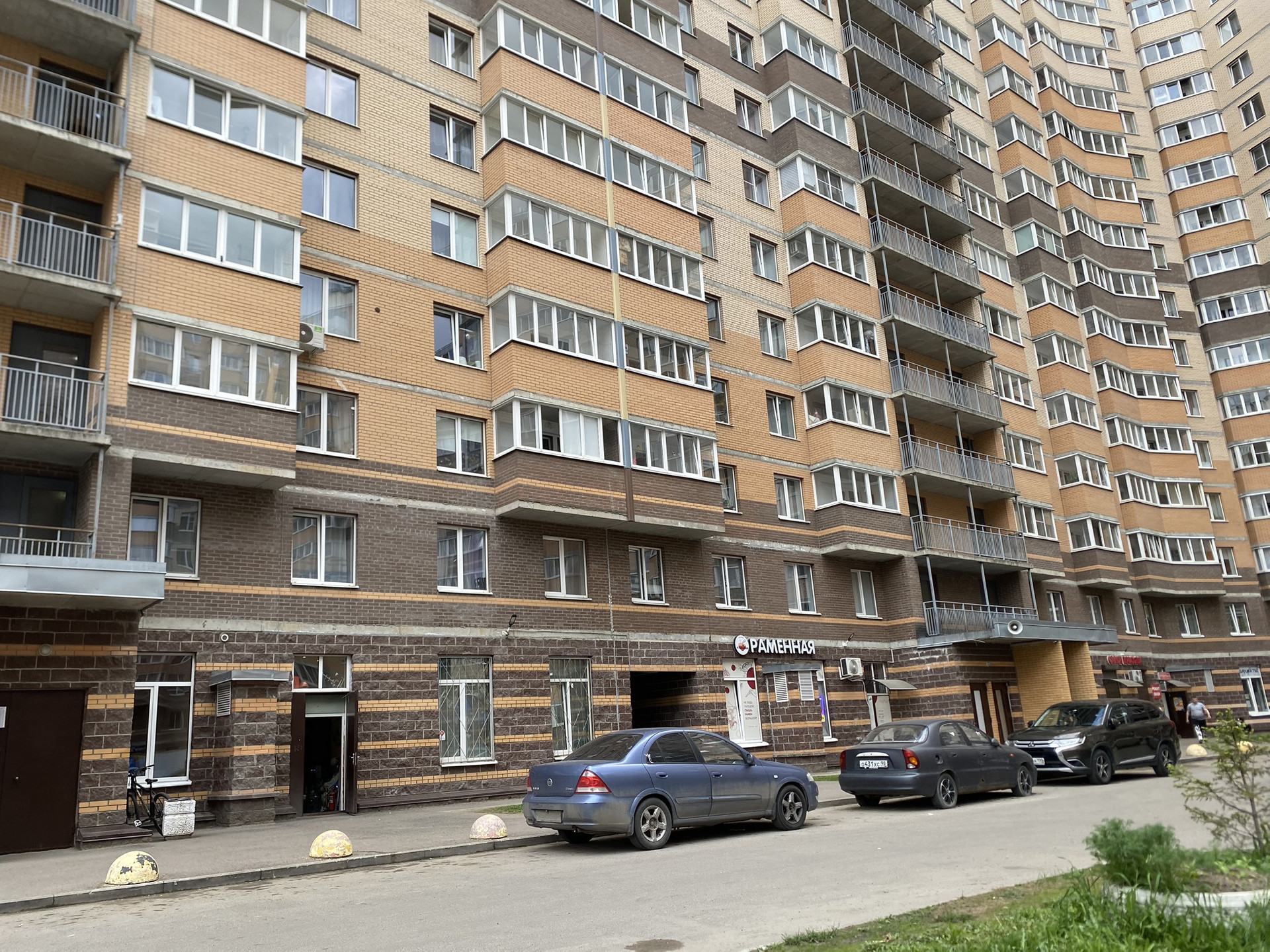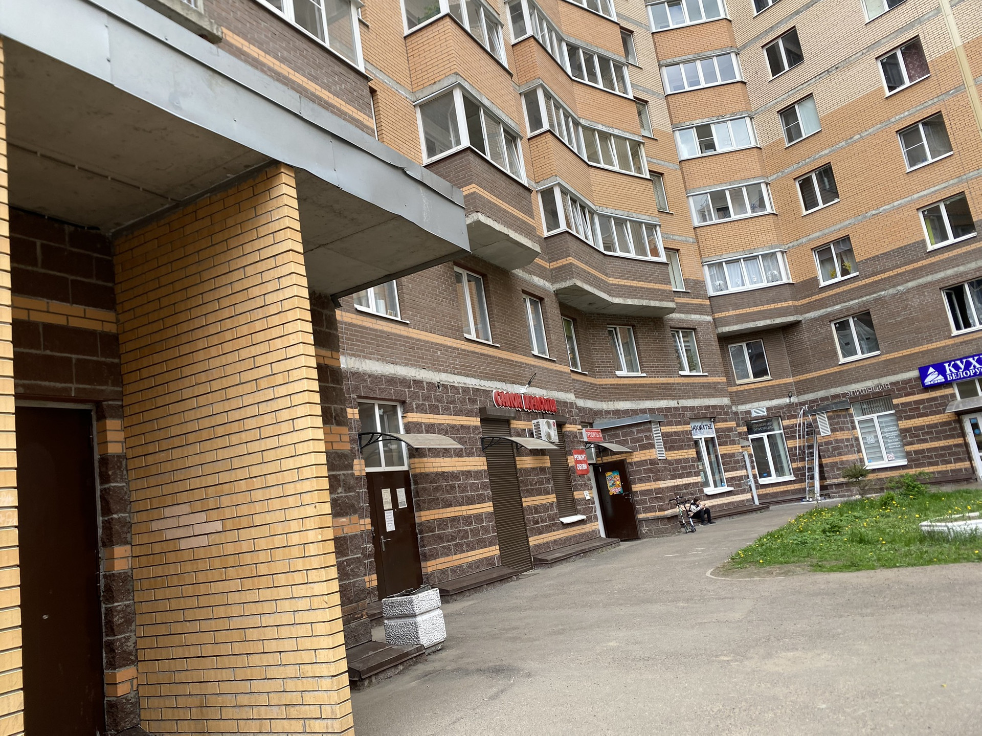 - На первых этажах коммерческие помещения. Во дворе школа.