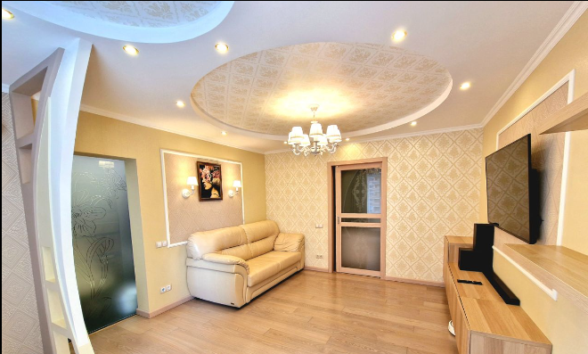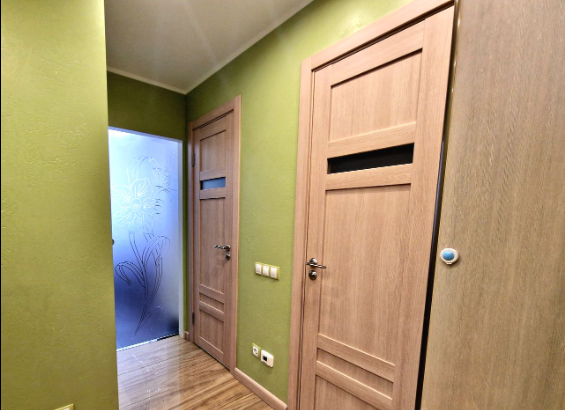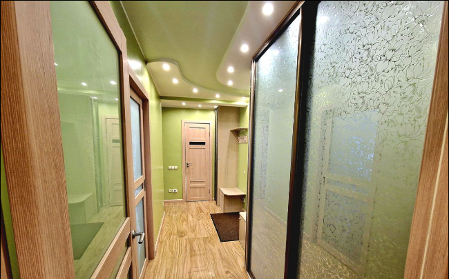 Ремонт делали по индивидуальному дизайн-проекту из премиальных импортных материалов: качественный ламинат, потолки гипсокартон, замена стеклопакетов на балконе на 3-х слойные, витражные двери-купе, стильная и продуманная система освещения с перекрестными выключателями, замена всех межкомнатных дверей на двери с магнитными замками.