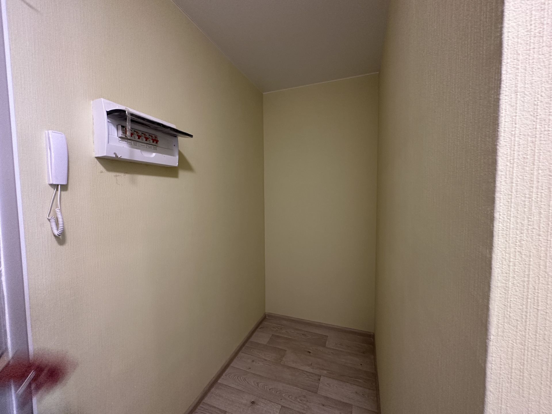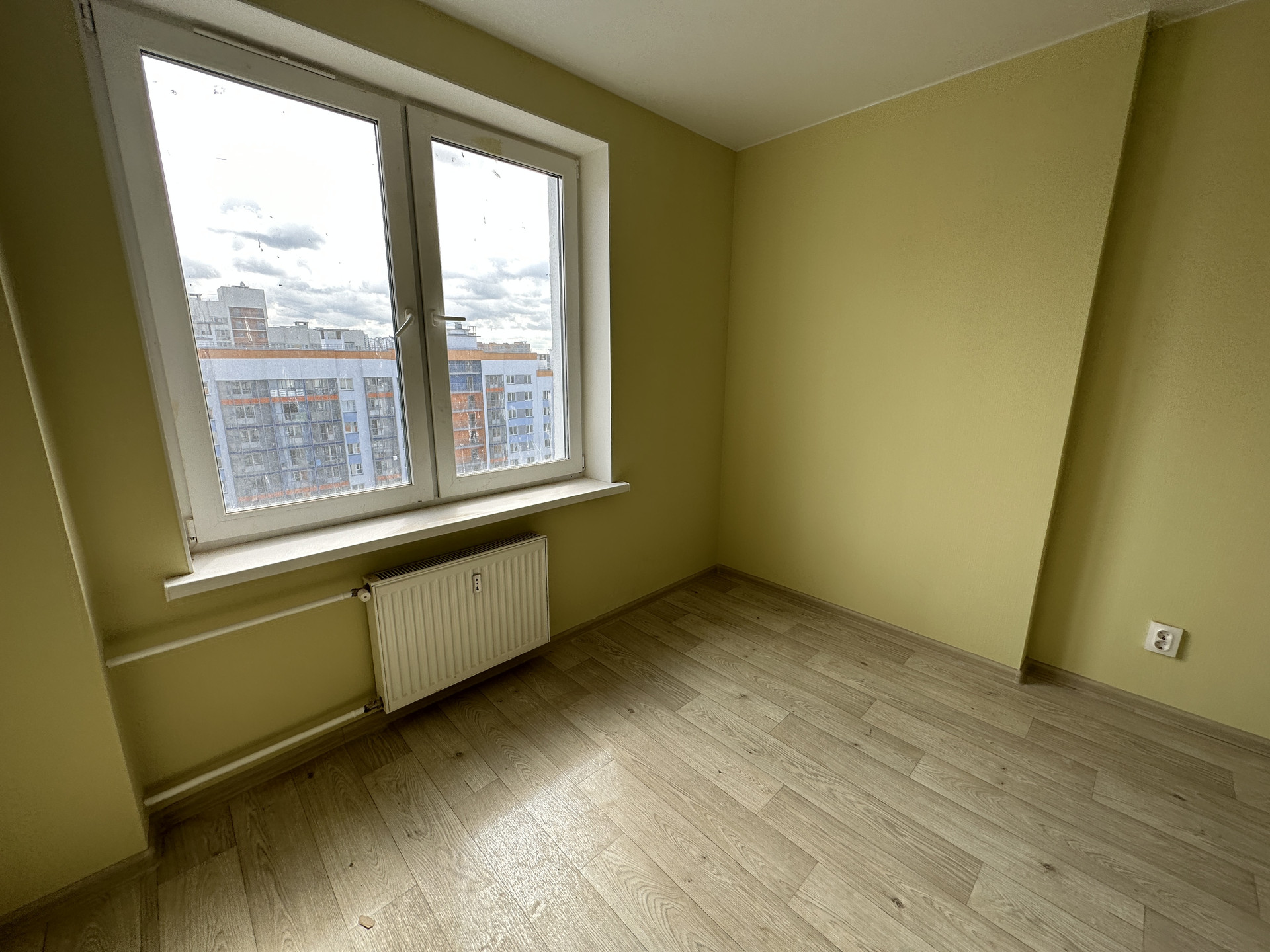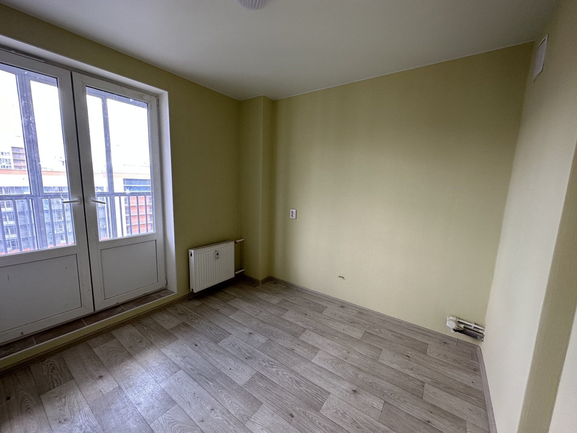 Ремонт выдержан в светлых тонах. Стены оклеены обоями, на полу - ламинат, в санузле на полу кафельная плитка, установлена сантехника, межкомнатные двери.