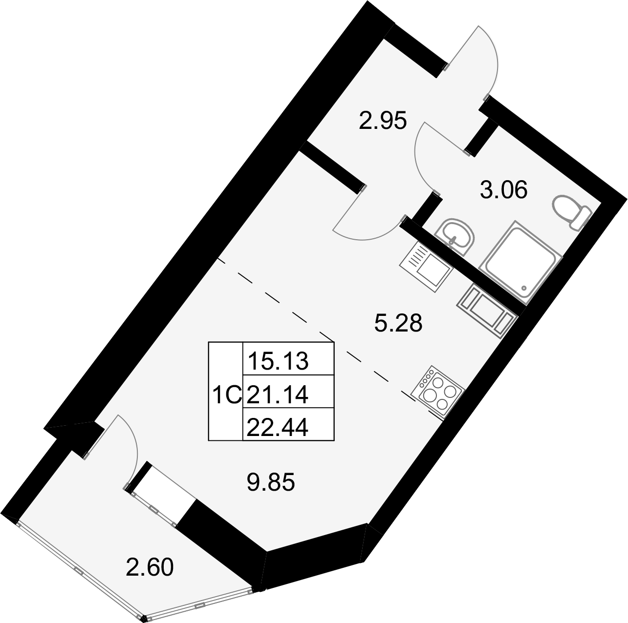 Общая площадь 22.44 м2
