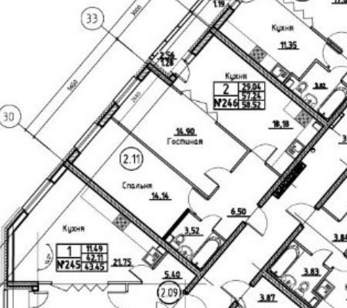 Общая площадь 57.24 м2