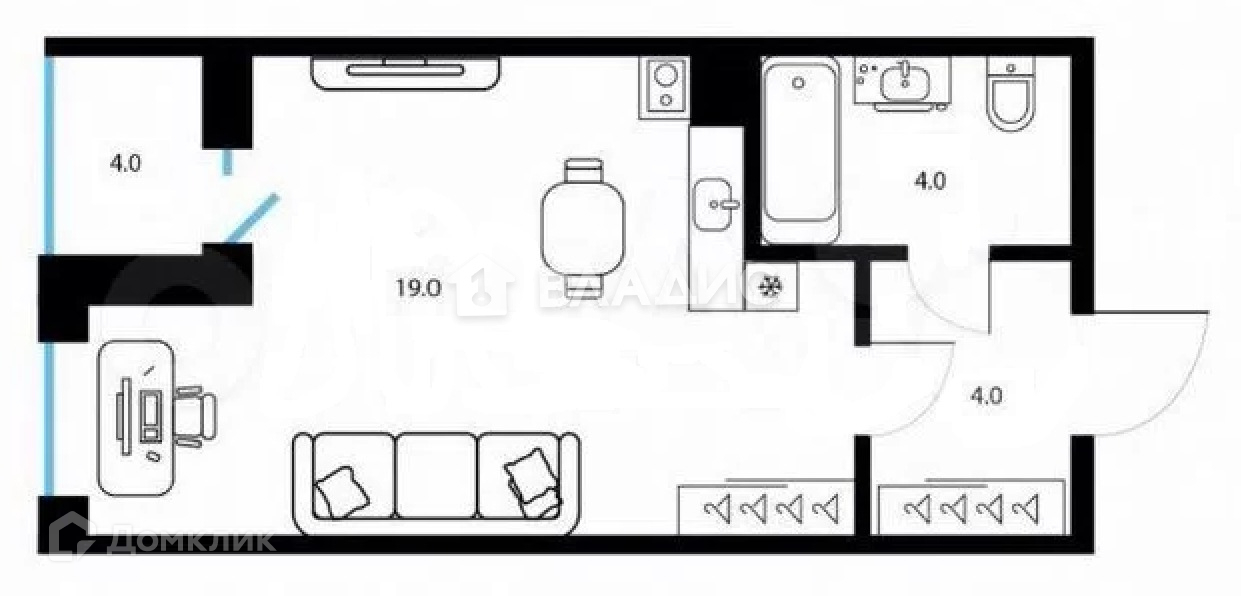 Жилая площадь 19 м2