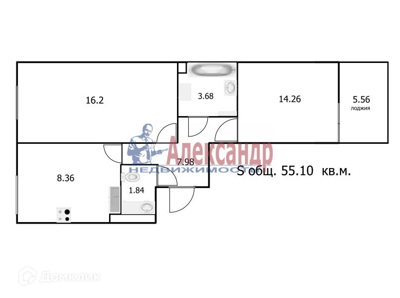 Общая площадь 55.1 м2