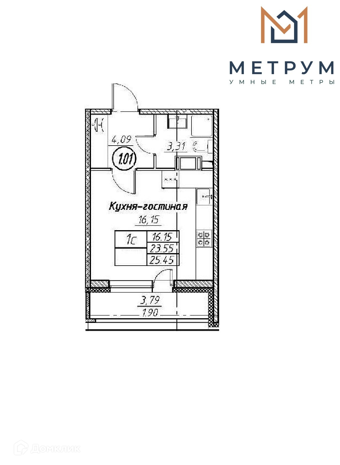 Общая площадь 25.5 м2