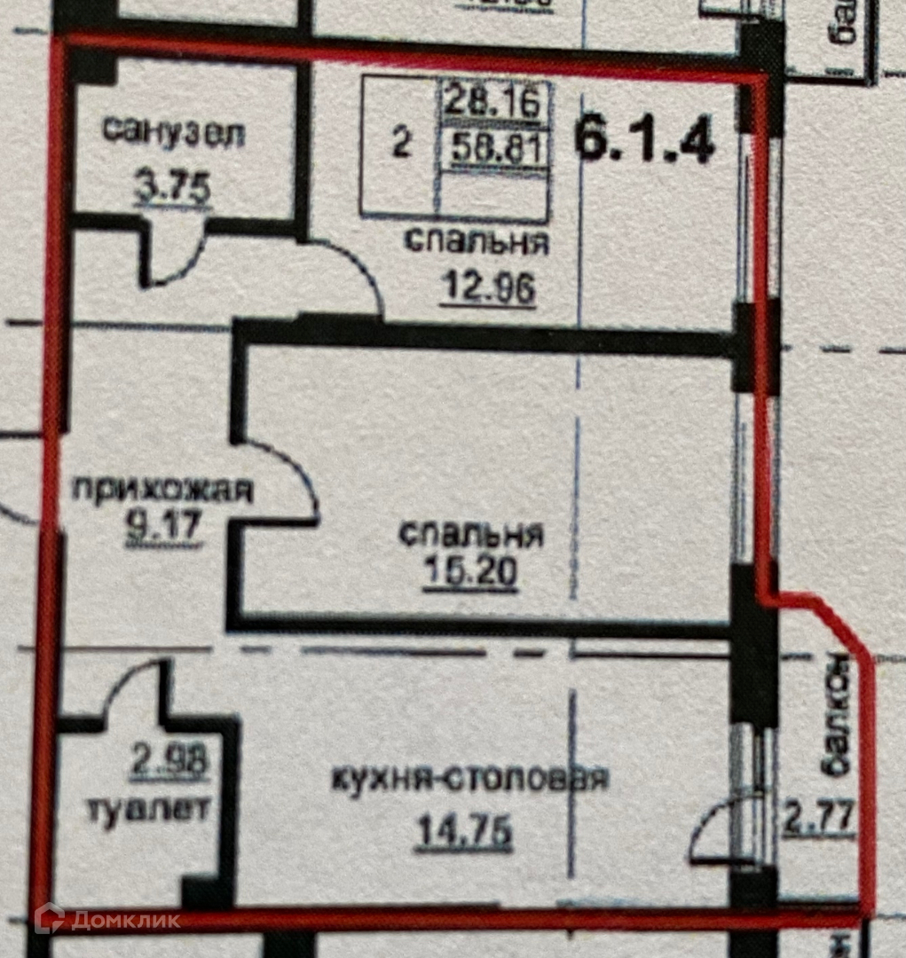 Общая площадь 59 м2