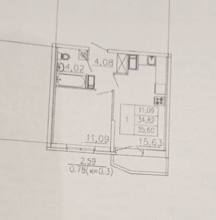 Общая площадь 35.6 м2