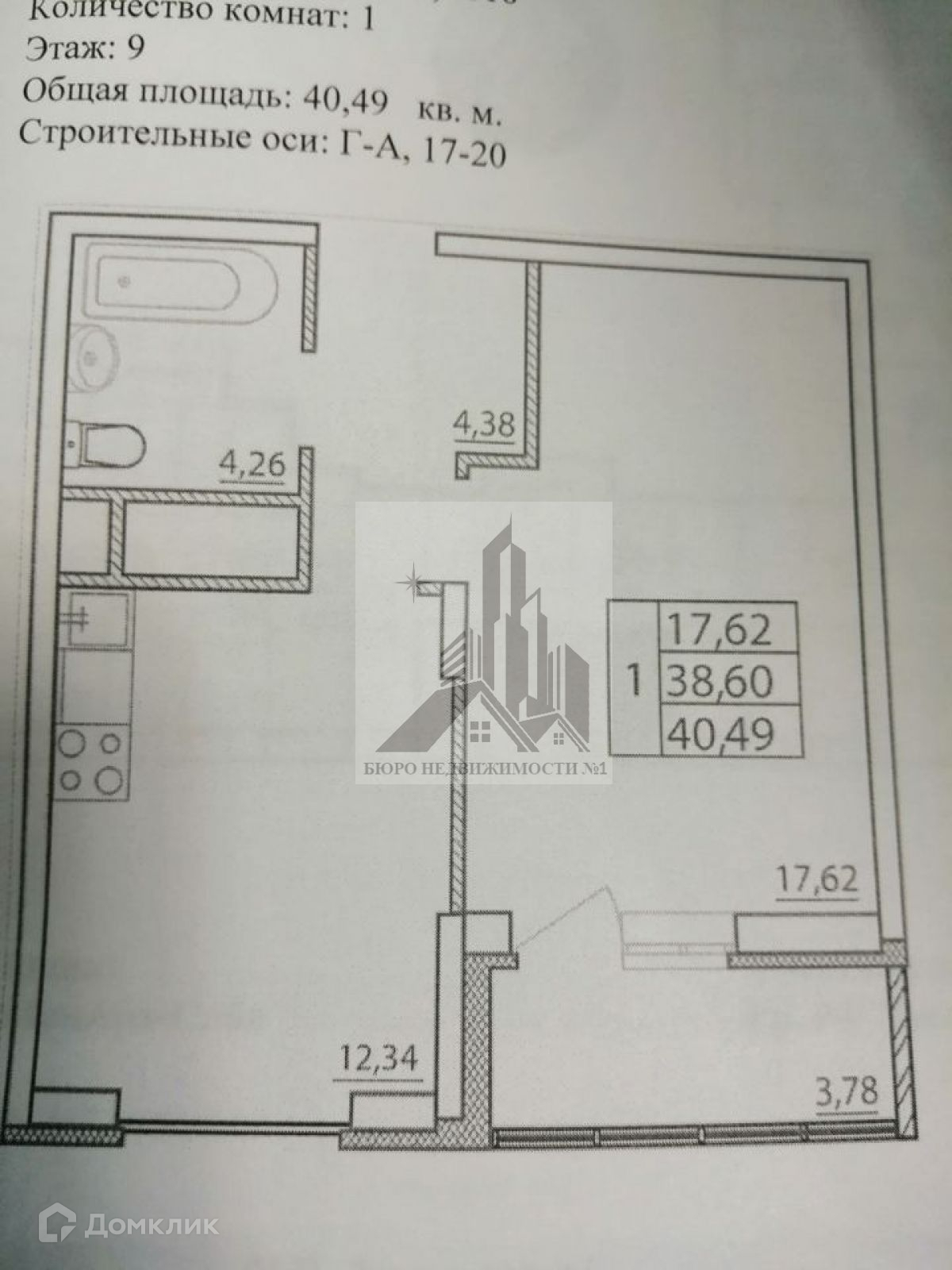 Общая площадь 40.5 м2