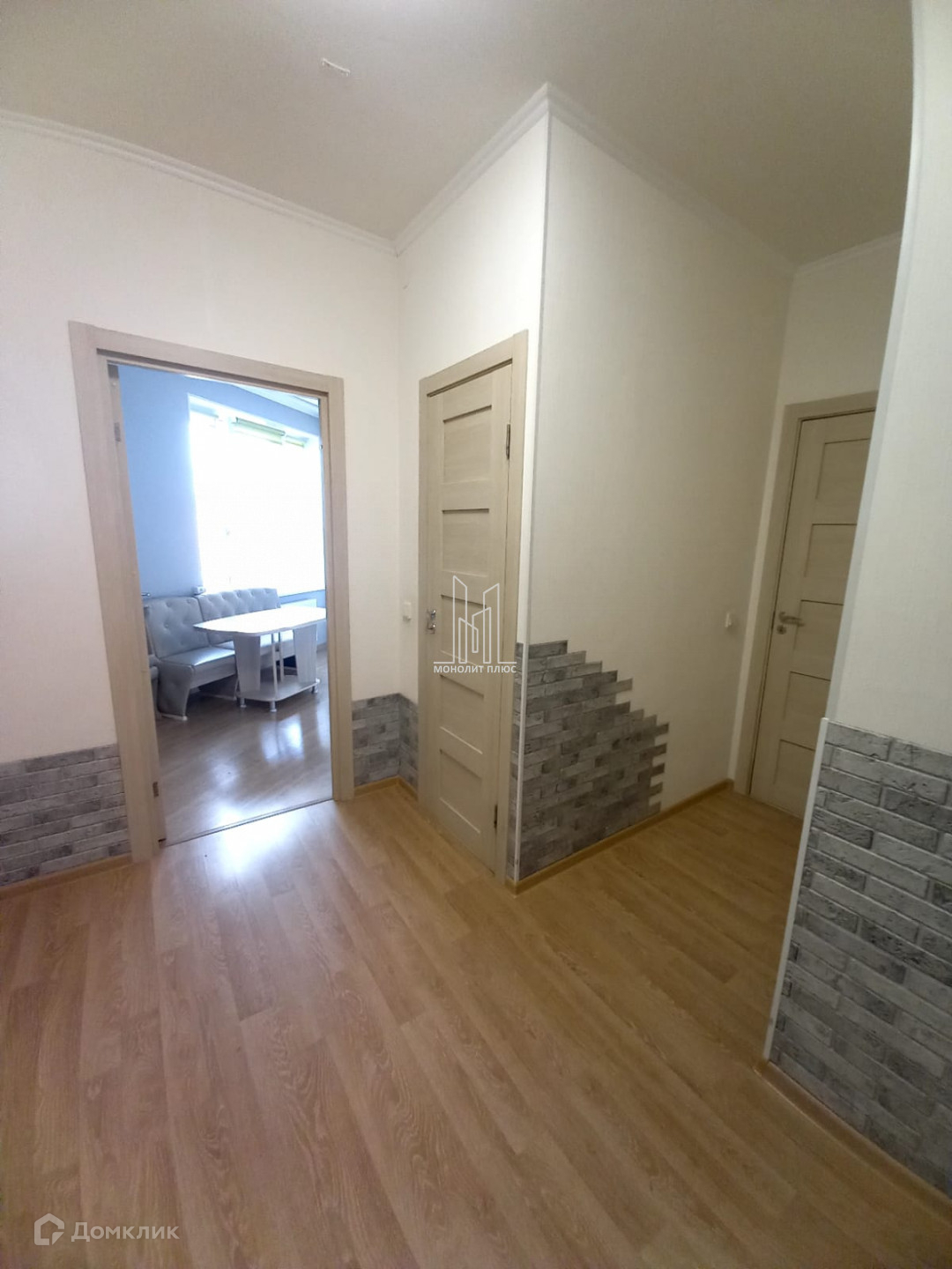 На лоджии можно организовать лаунж-зону, для этого вычищена стена для отделки, что увеличило площадь.