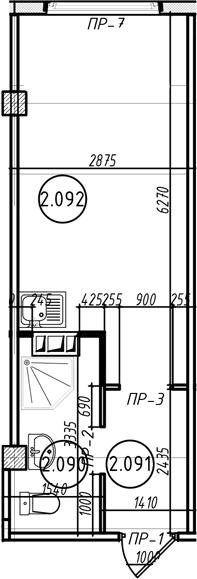 Общая площадь 24.5 м2