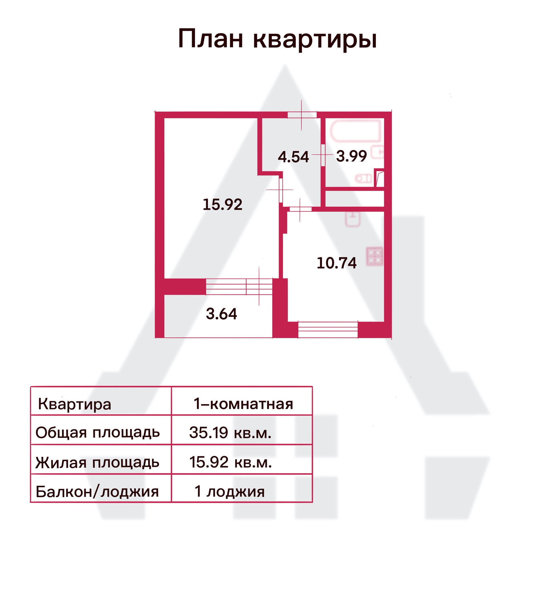 Общая площадь 35.19 м2