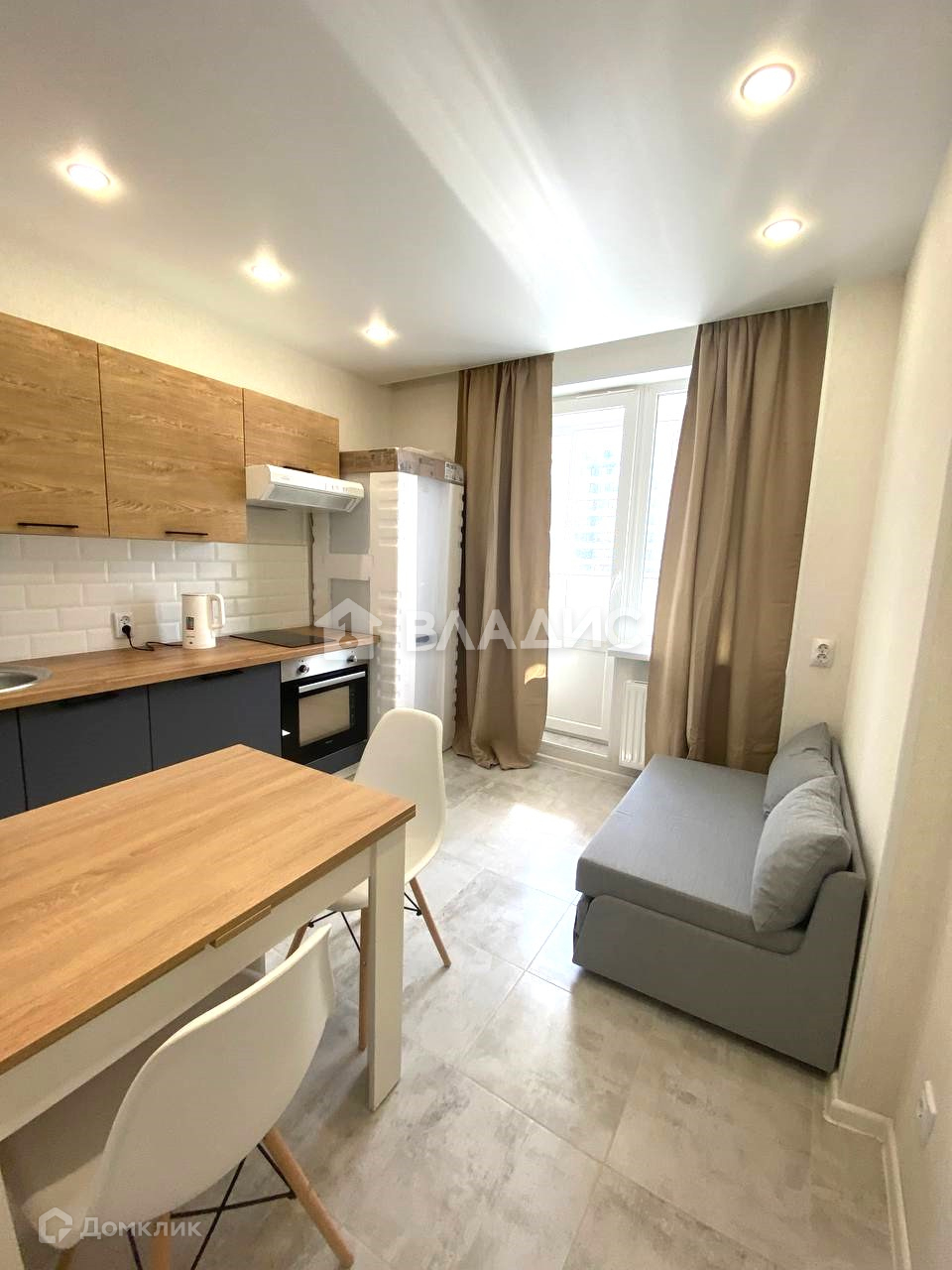 Покупателям остаётся вся мебель и техника: кухонный гарнитур с духовым шкафом и варочной поверхностью, холодильник, стиральная машина, диван, кровать, столы, комод, шкаф-купе.