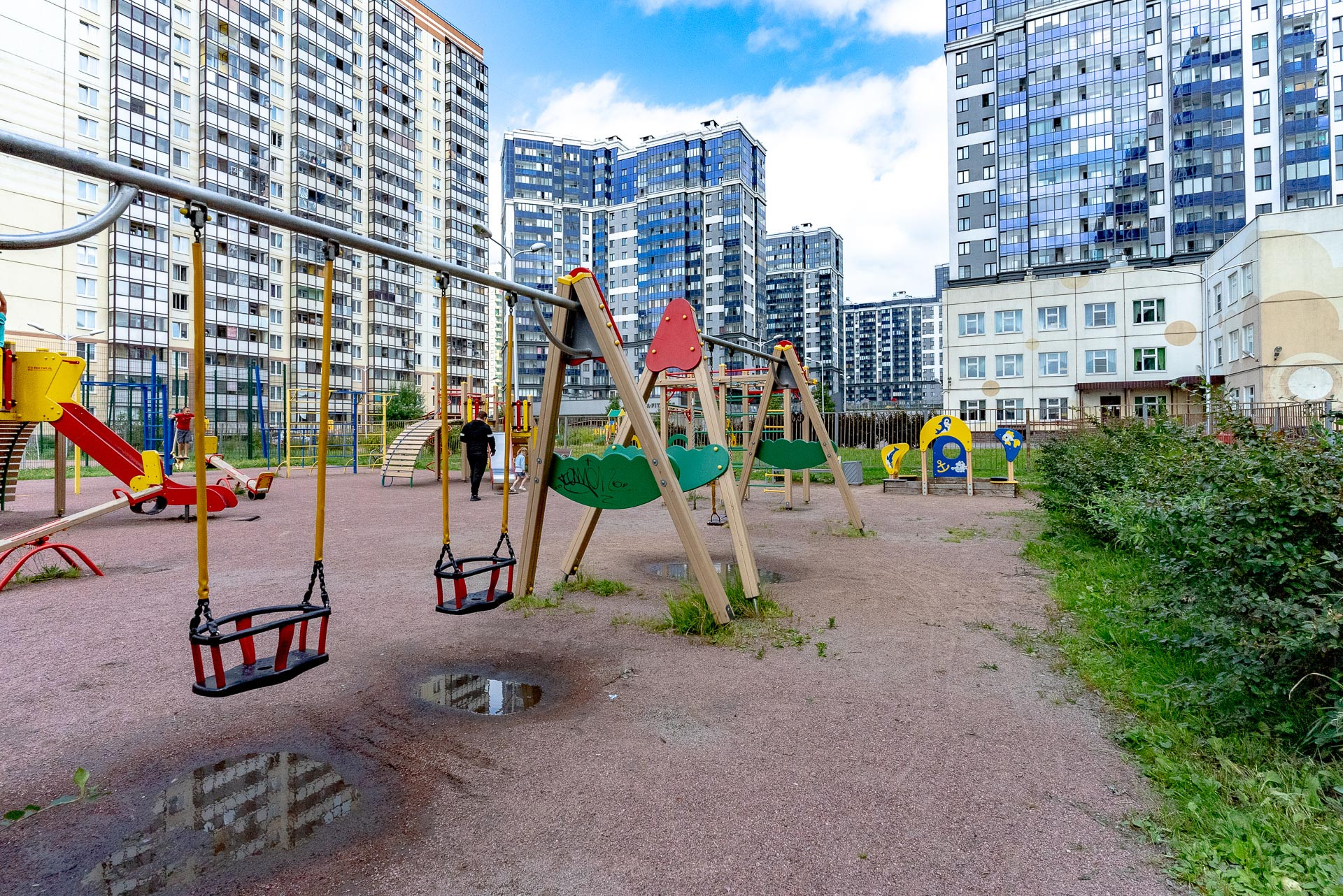 Инфраструктура очень развита, школы, детские сады, магазины и кафе все в пятиминутной шаговой доступности.